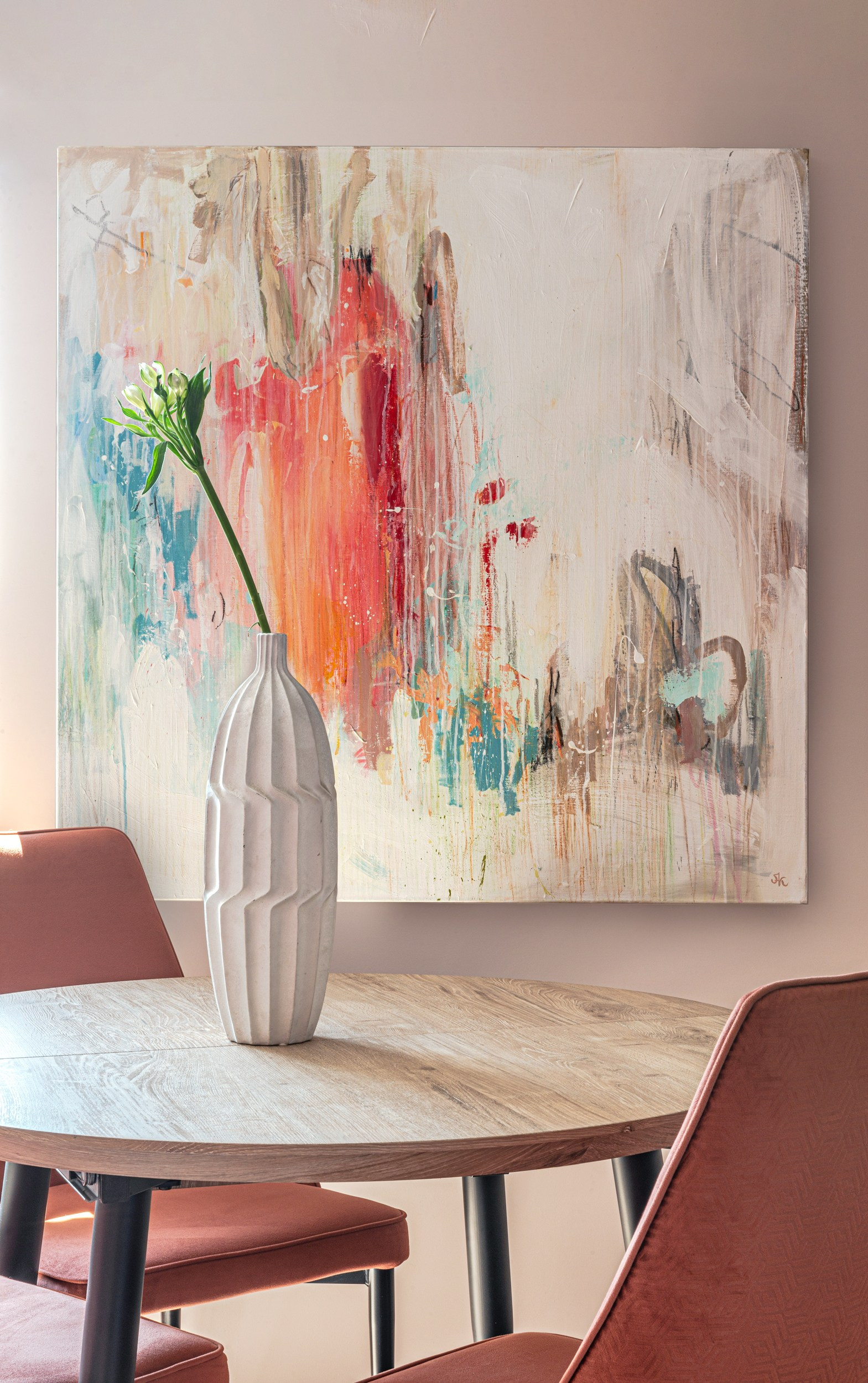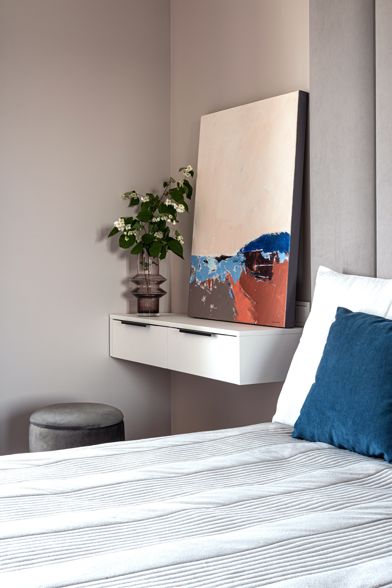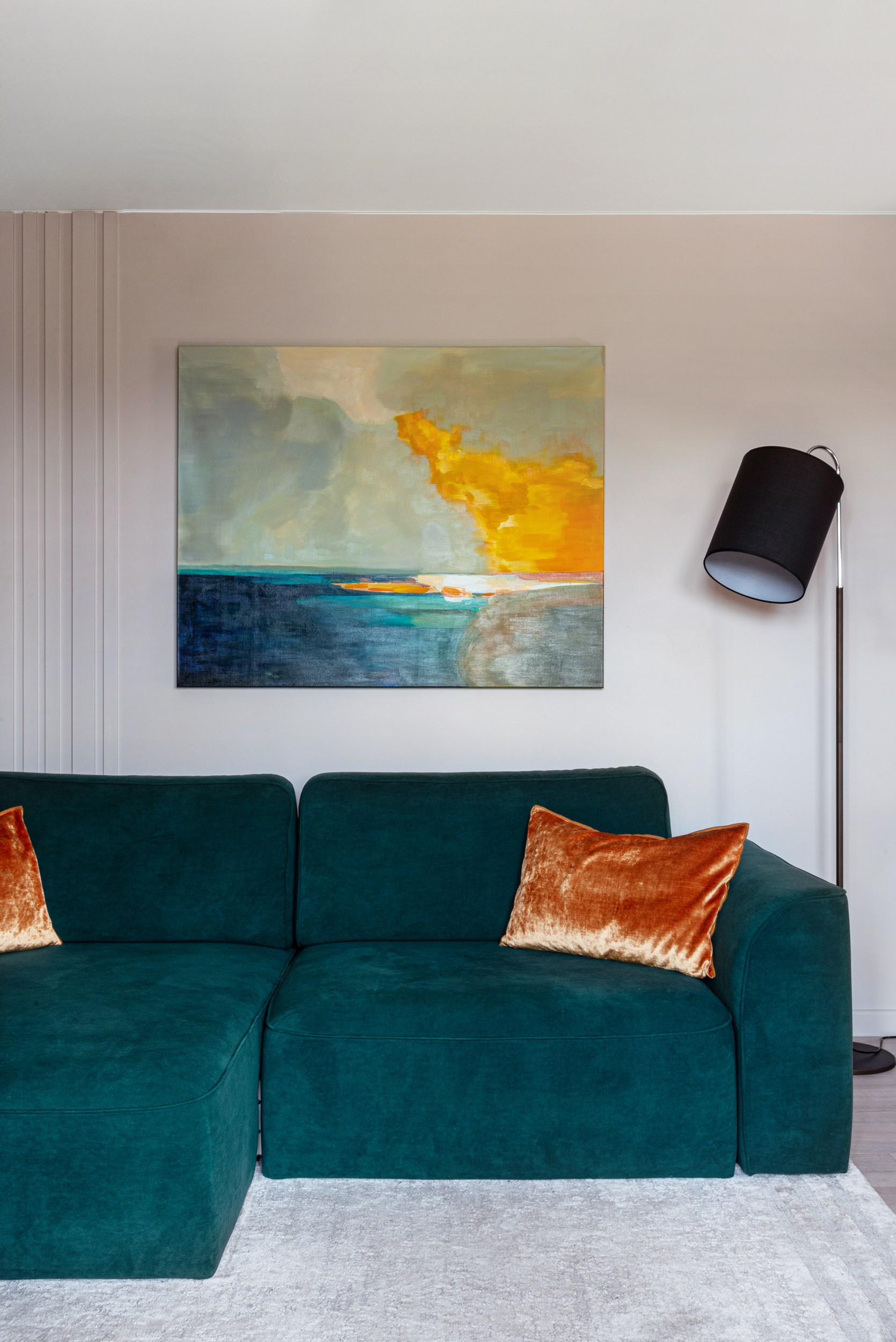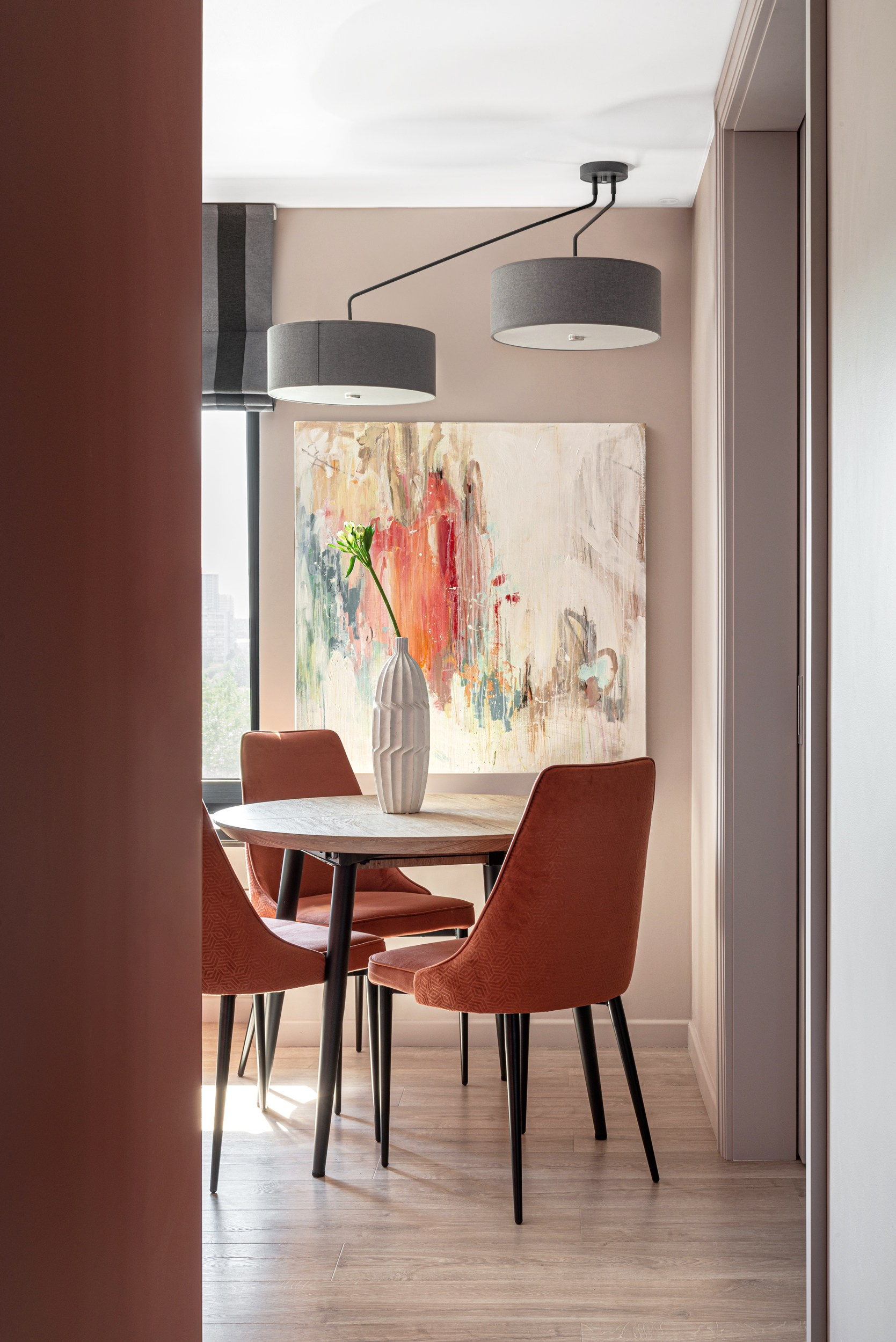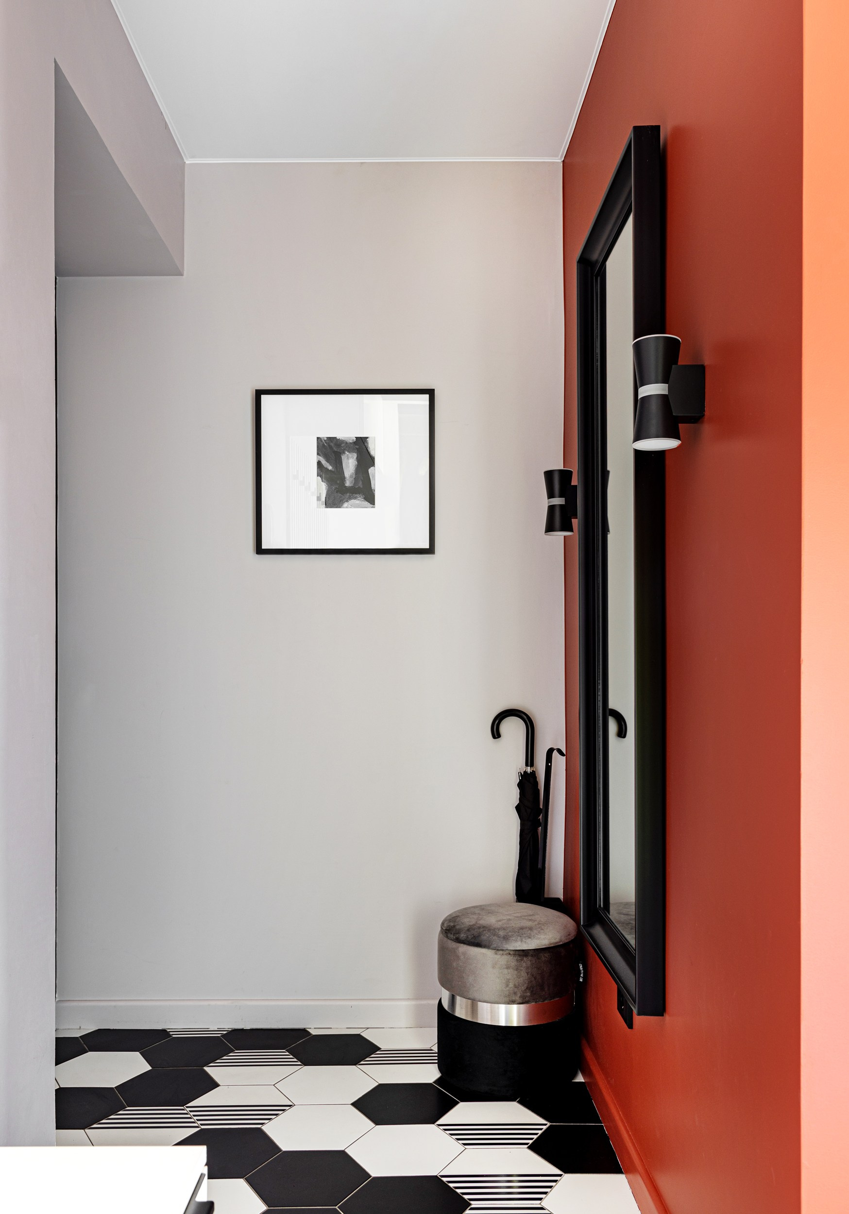Я предложила сделать в квартире цветной терракотовый куб. Много ярких цветов не хотелось использовать, тк квартира не очень большая, а вот куб — отлично подошел, спрятал санузел и придал квартире изюминку.