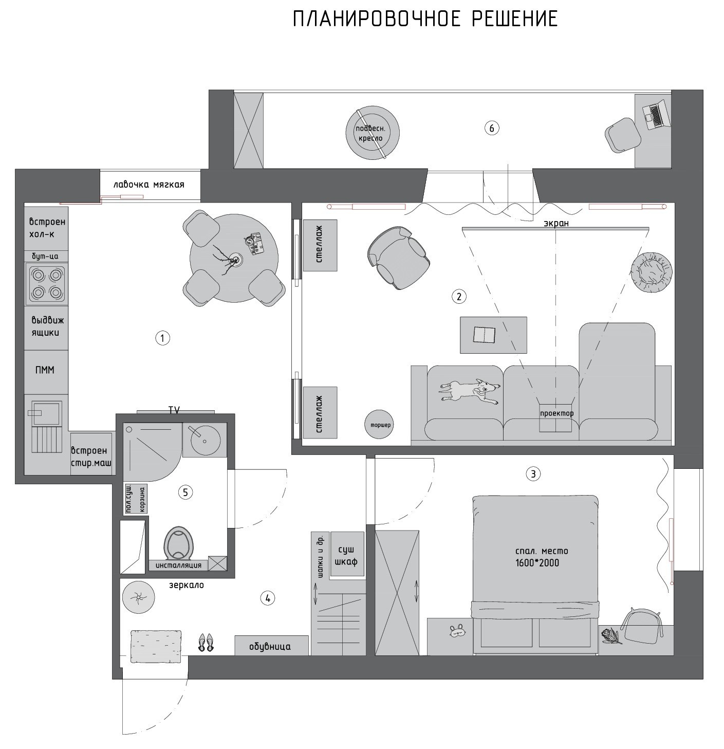 Телевизора в квартире нет, кино ребятам нравится смотреть через проектор на экране, а поработать можно за столом на лоджии.