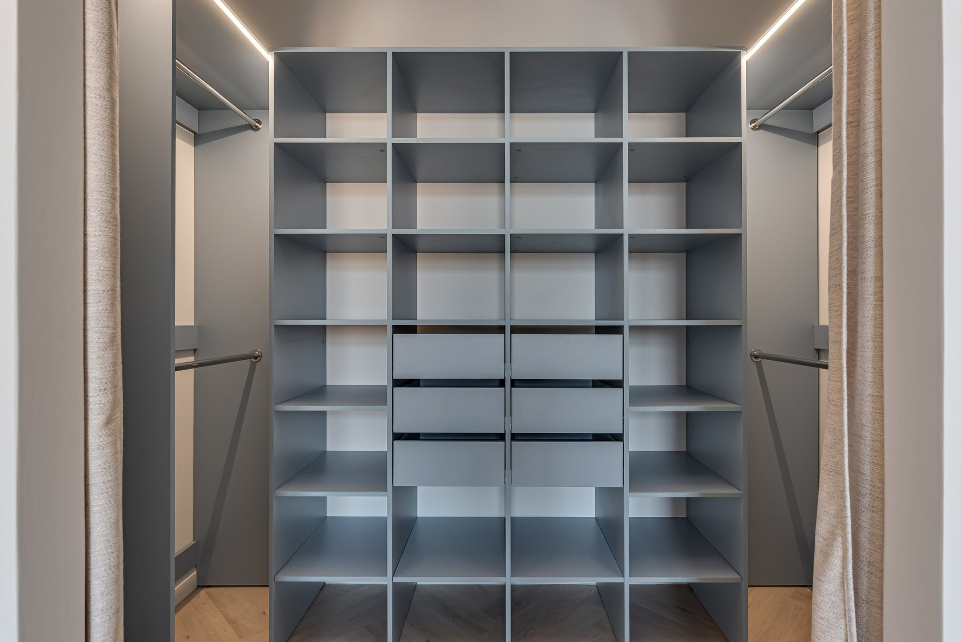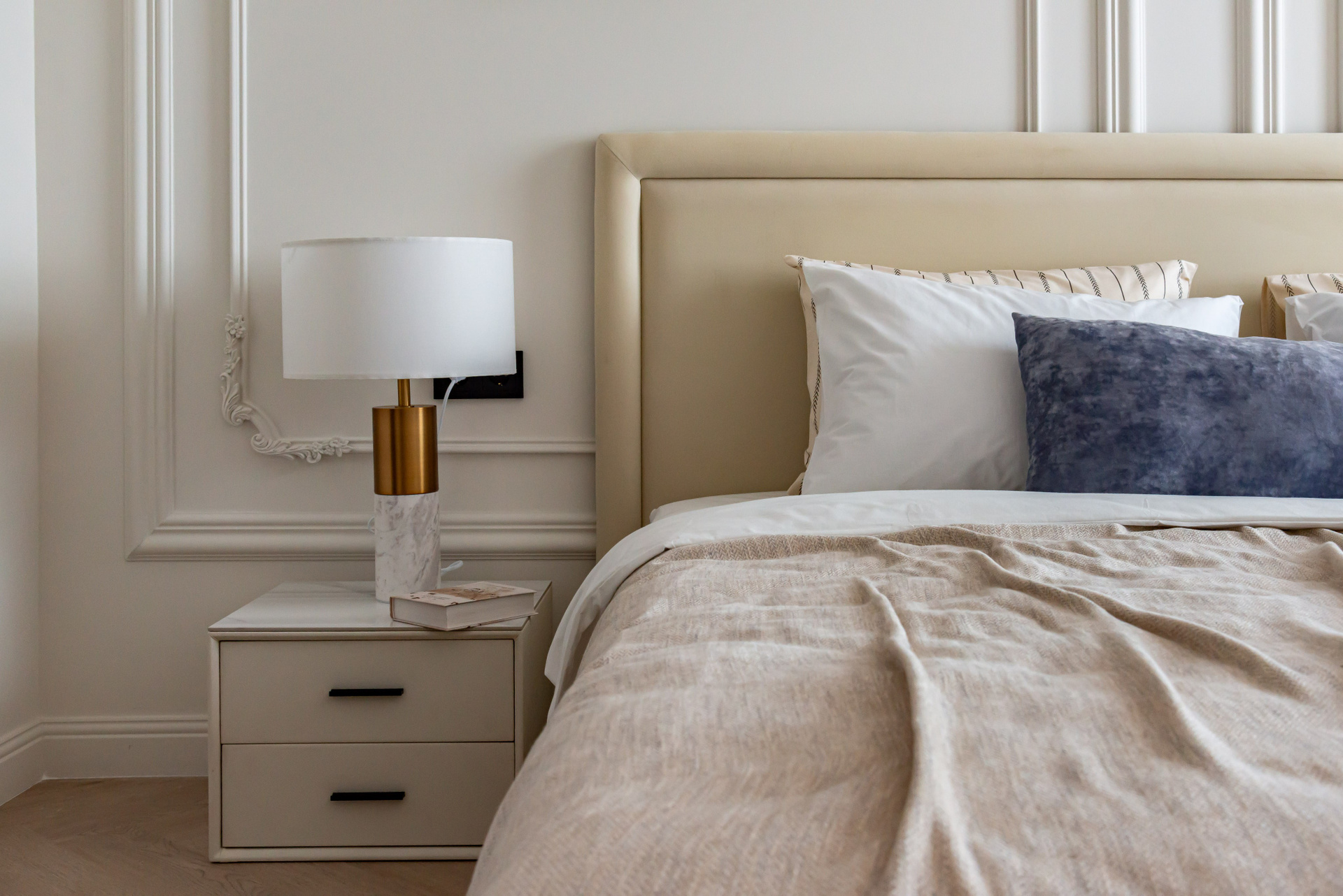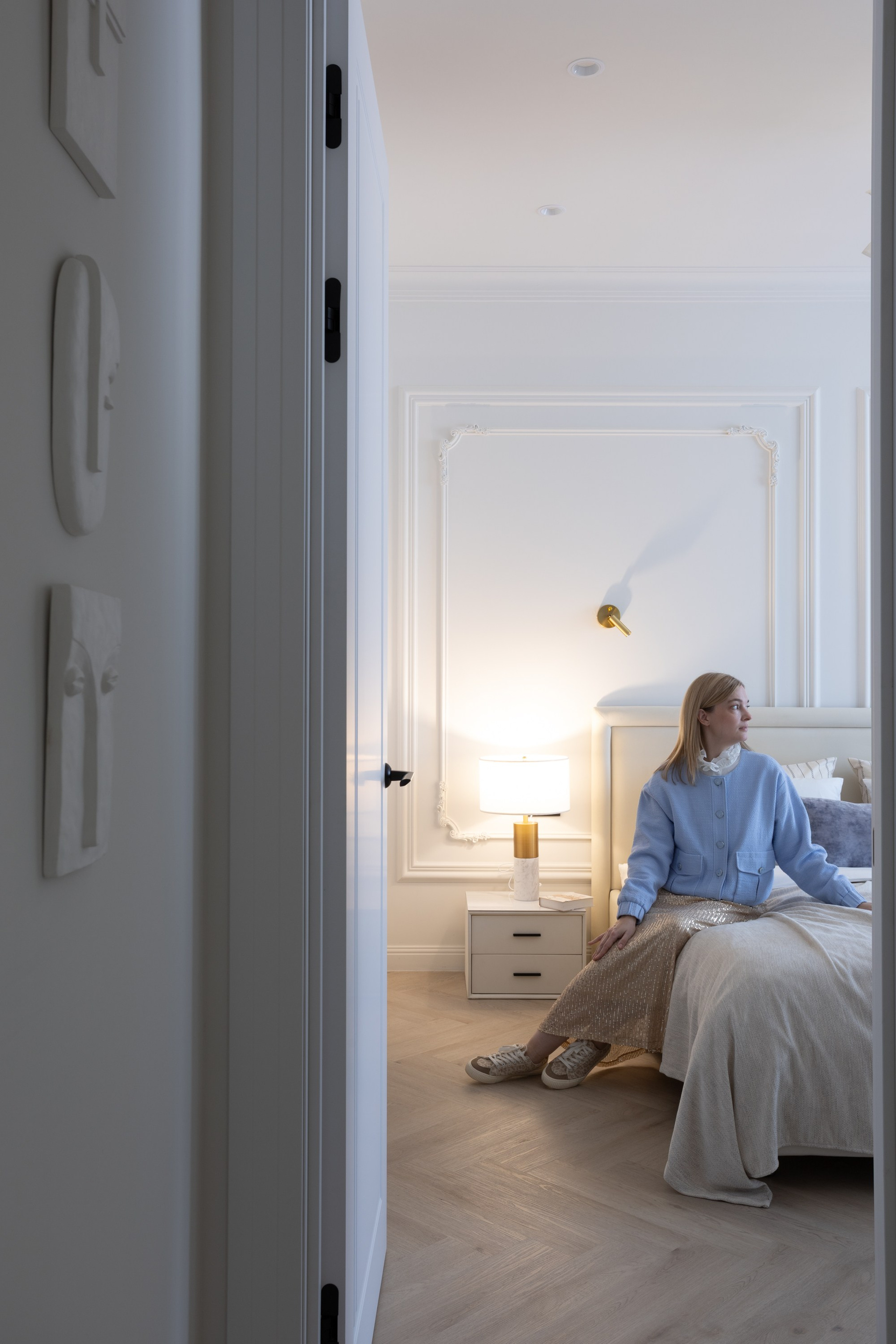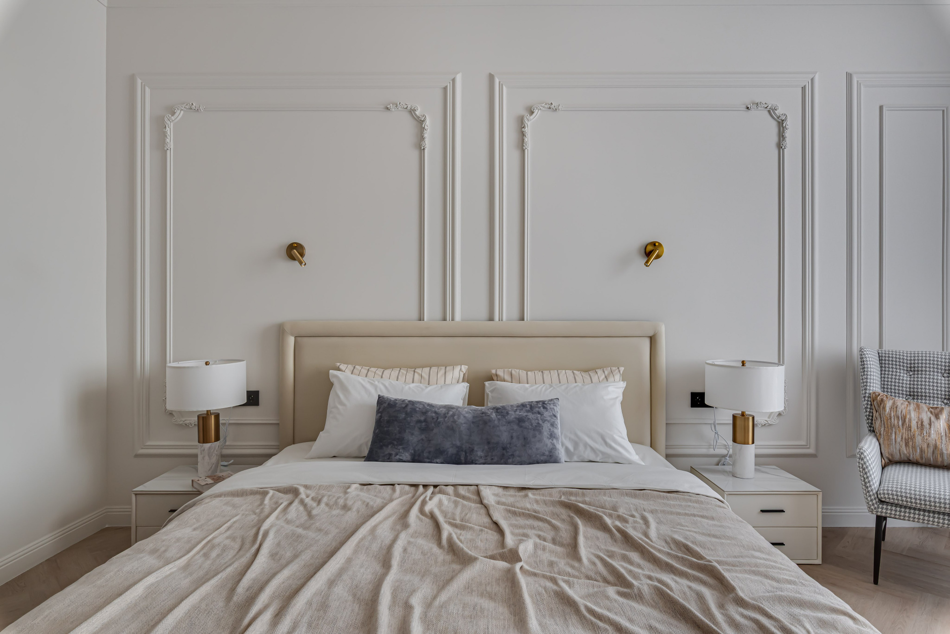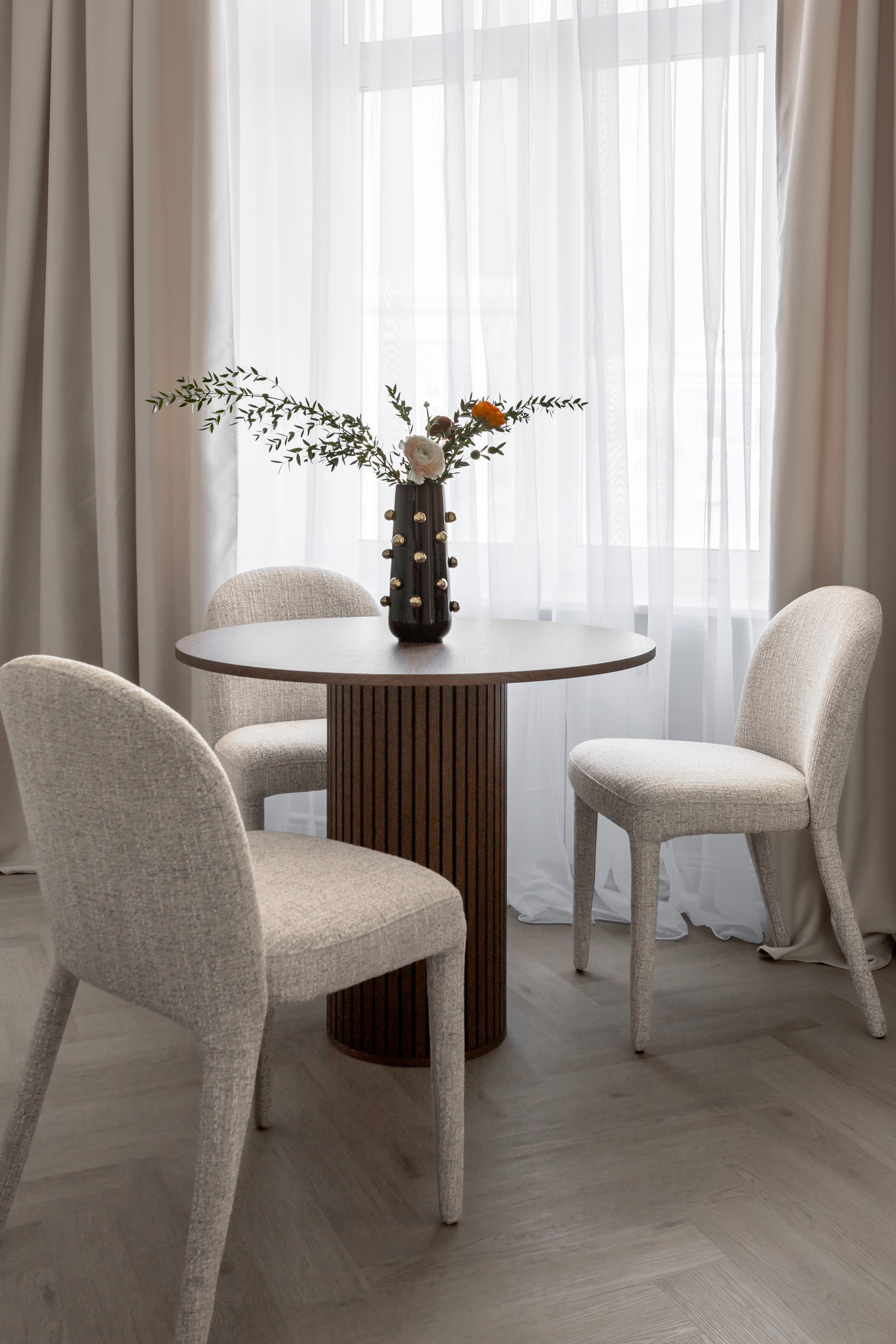 Этот дизайн квартиры был создан мной для вторички на Кутузе по просьбе флипперской компании. Это дом с богатой историей и красивыми видами. Важно было не уронить статус и при этом уложиться в нужный бюджет. И, конечно, придумать какую-то изюминку — ею стала золотая кухня необычной планировки с раковиной у окна, аля «мечта хозяйки». Фото ДО можно посмотреть в конце галереи.