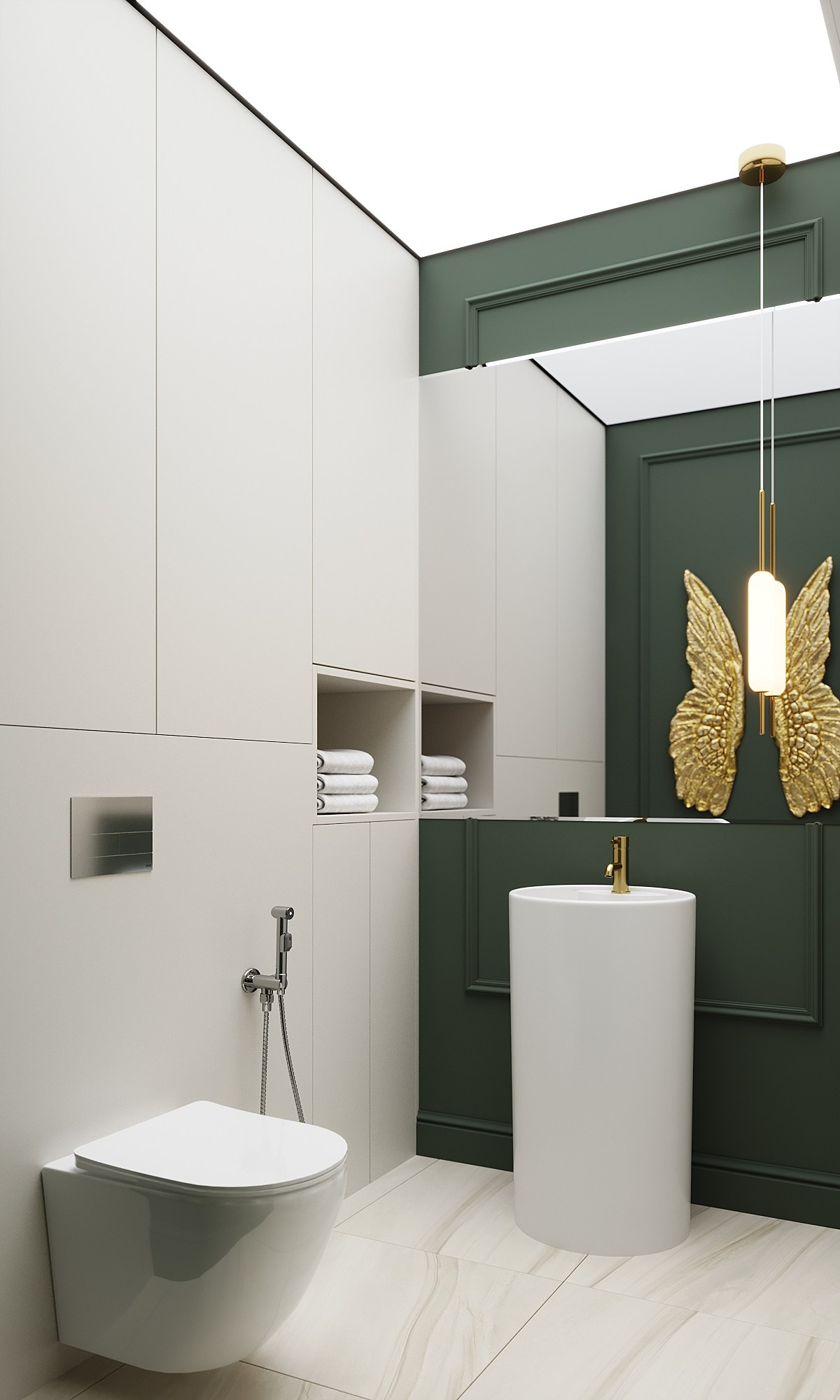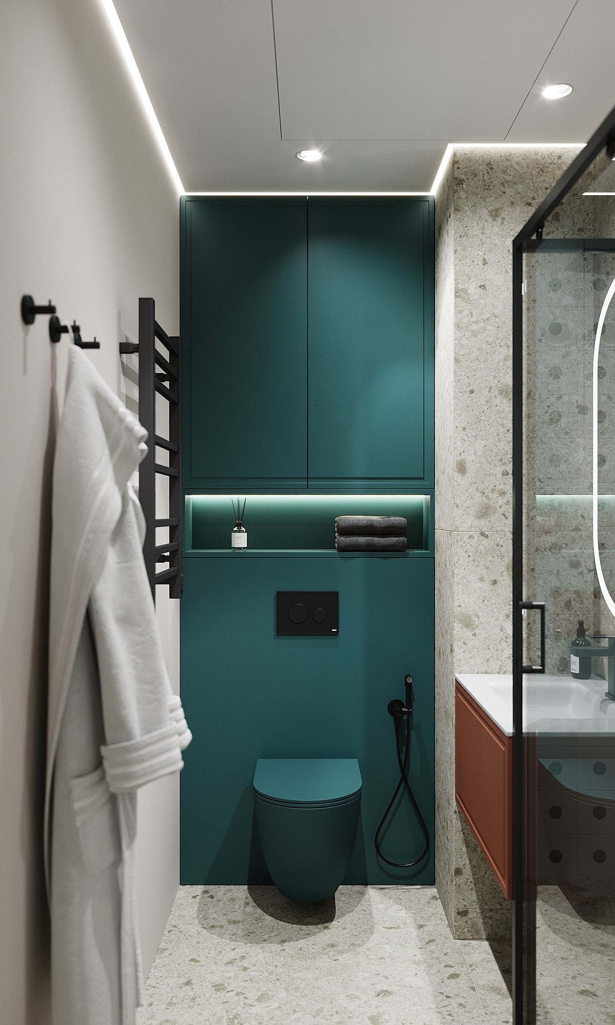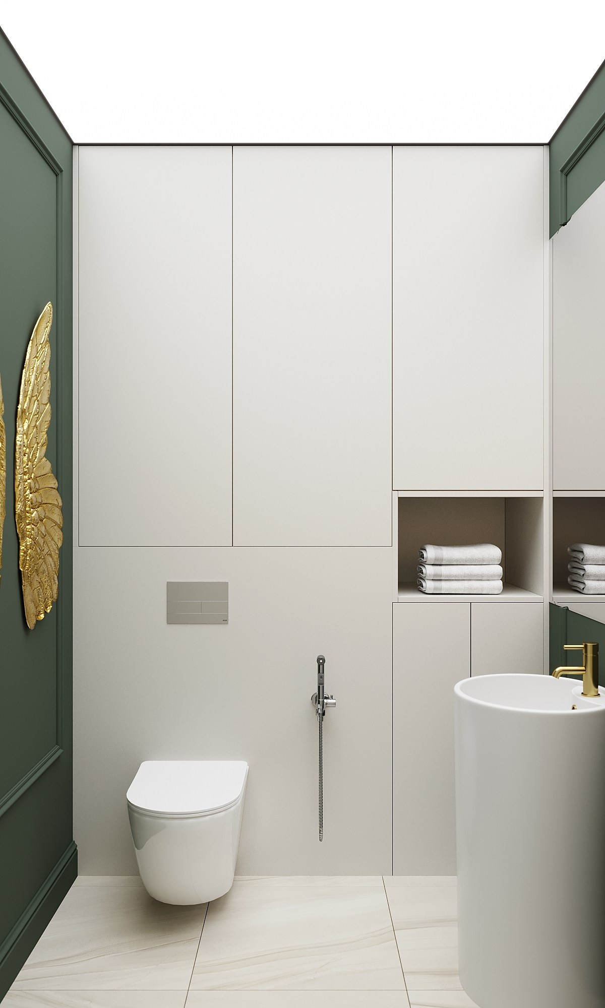 Также есть комплект санузлов, включая эффектный гостевой с зоной селфи, постирочная, а также много мест для хранения.