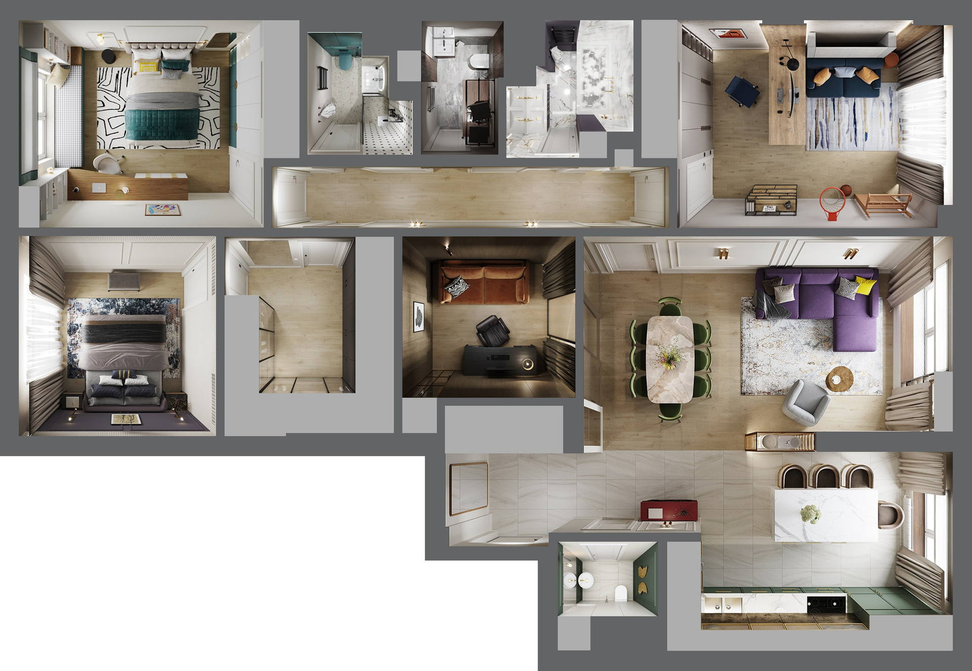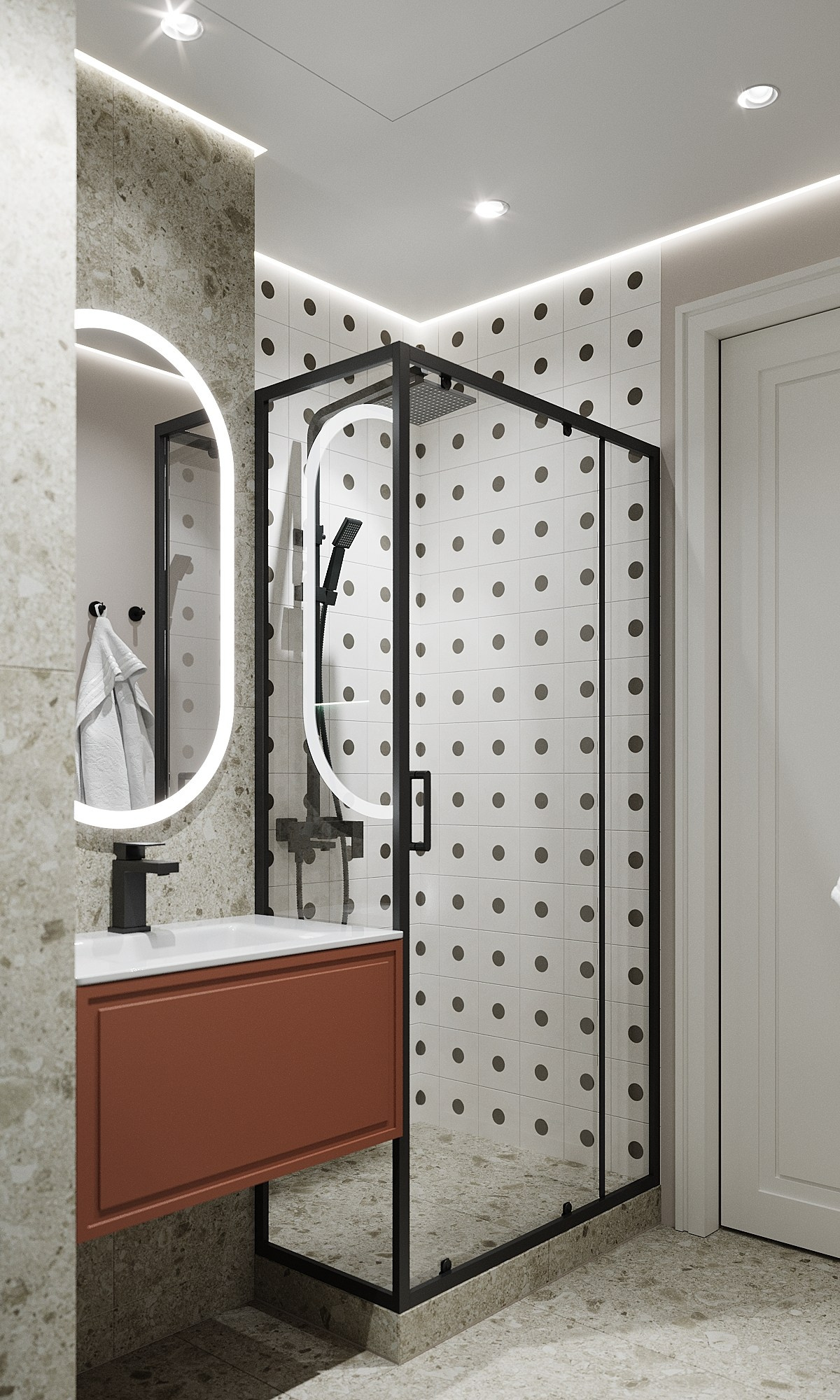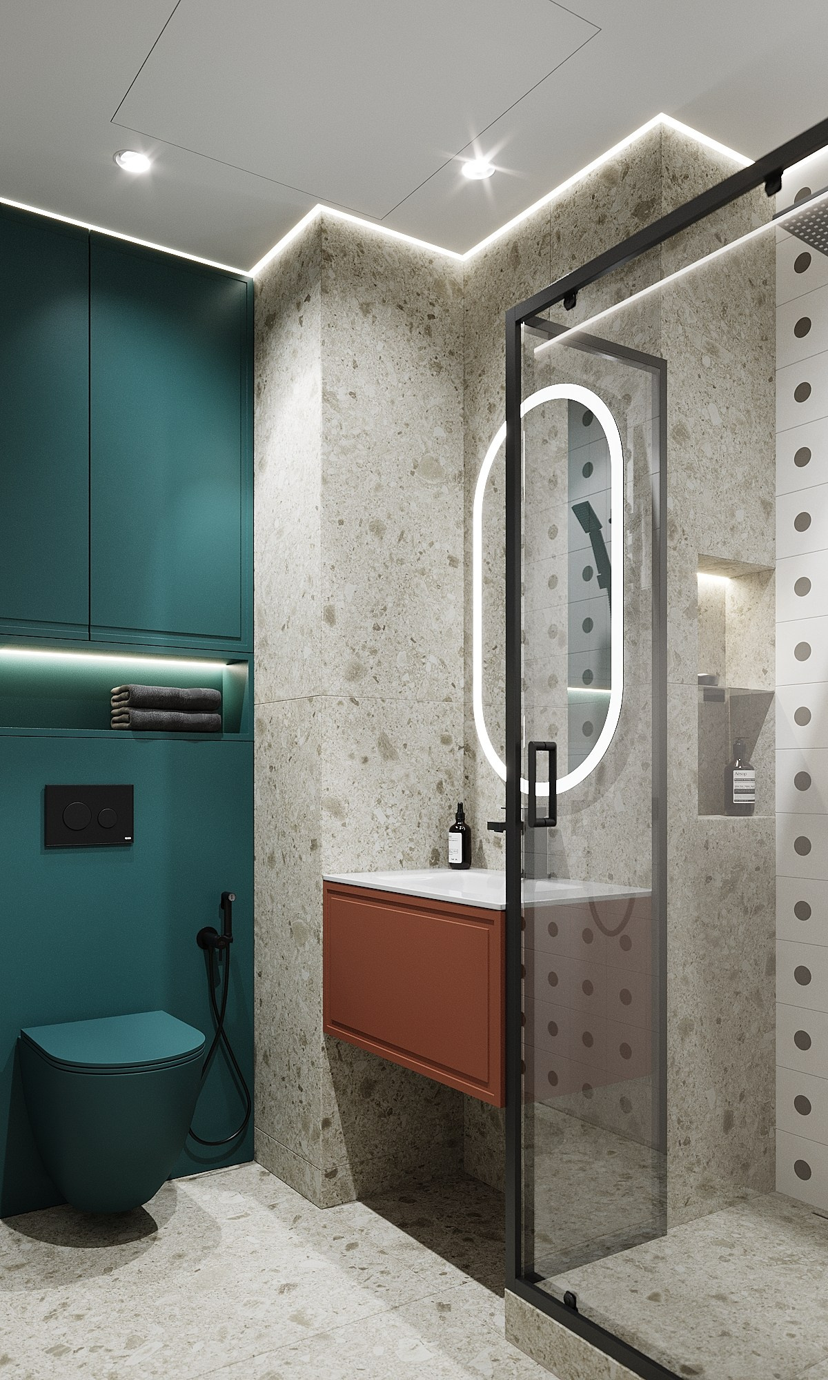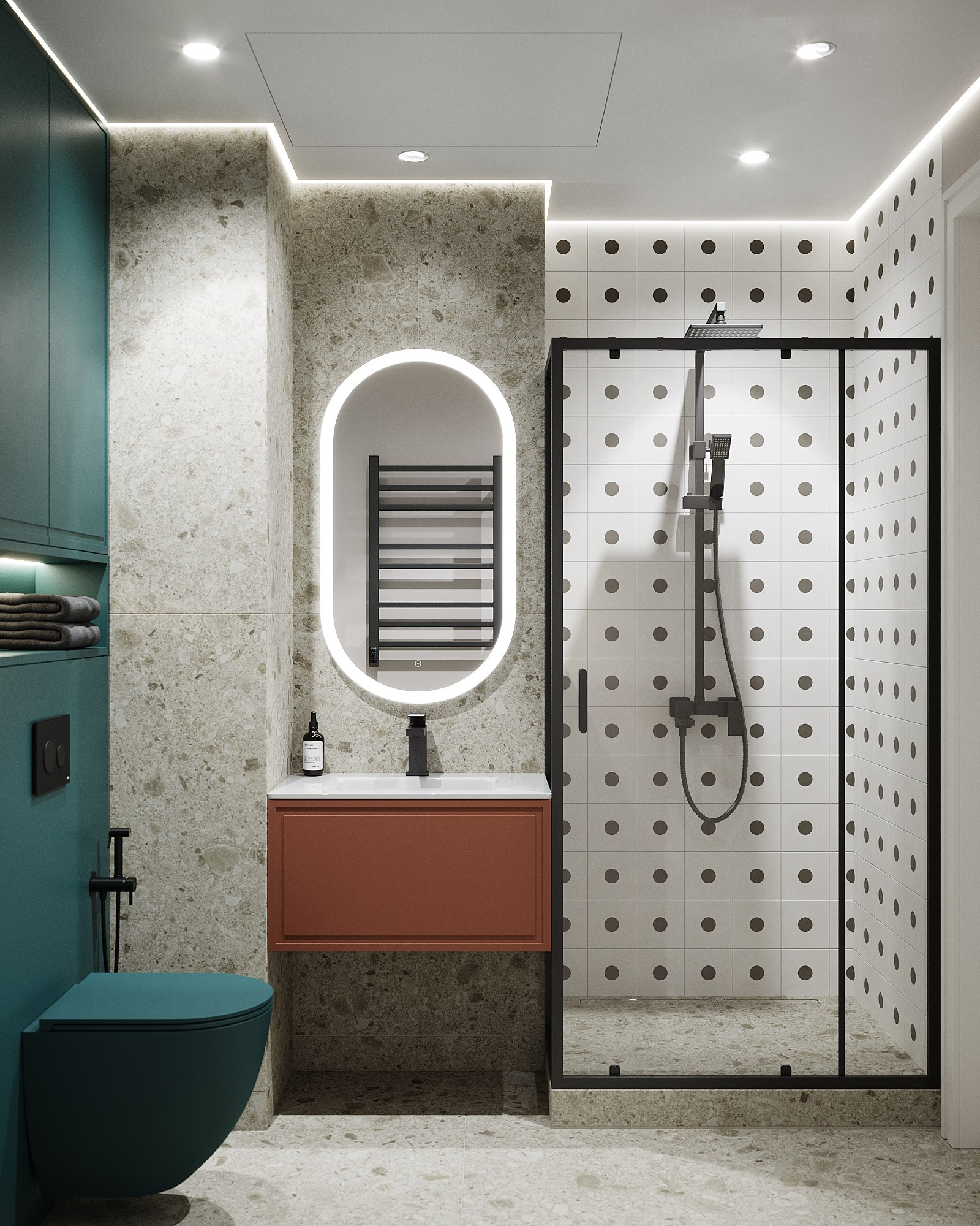 Также есть комплект санузлов, включая эффектный гостевой с зоной селфи, постирочная, а также много мест для хранения.