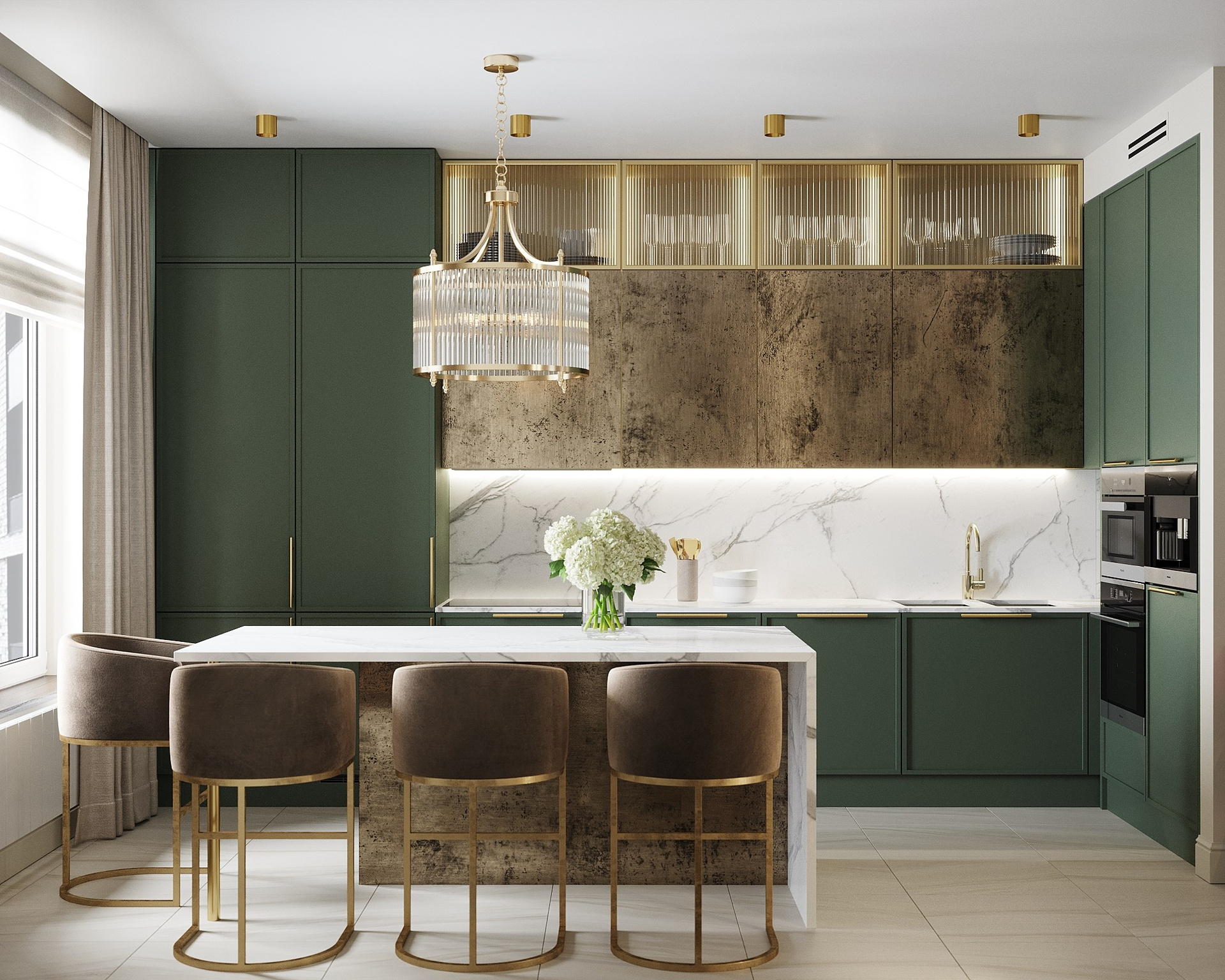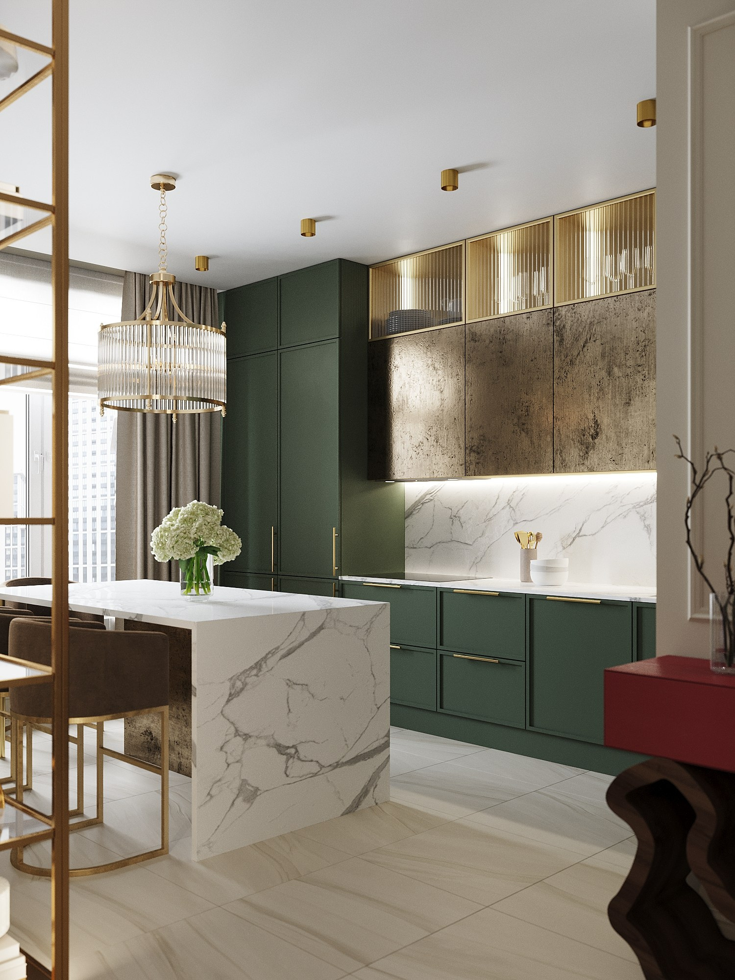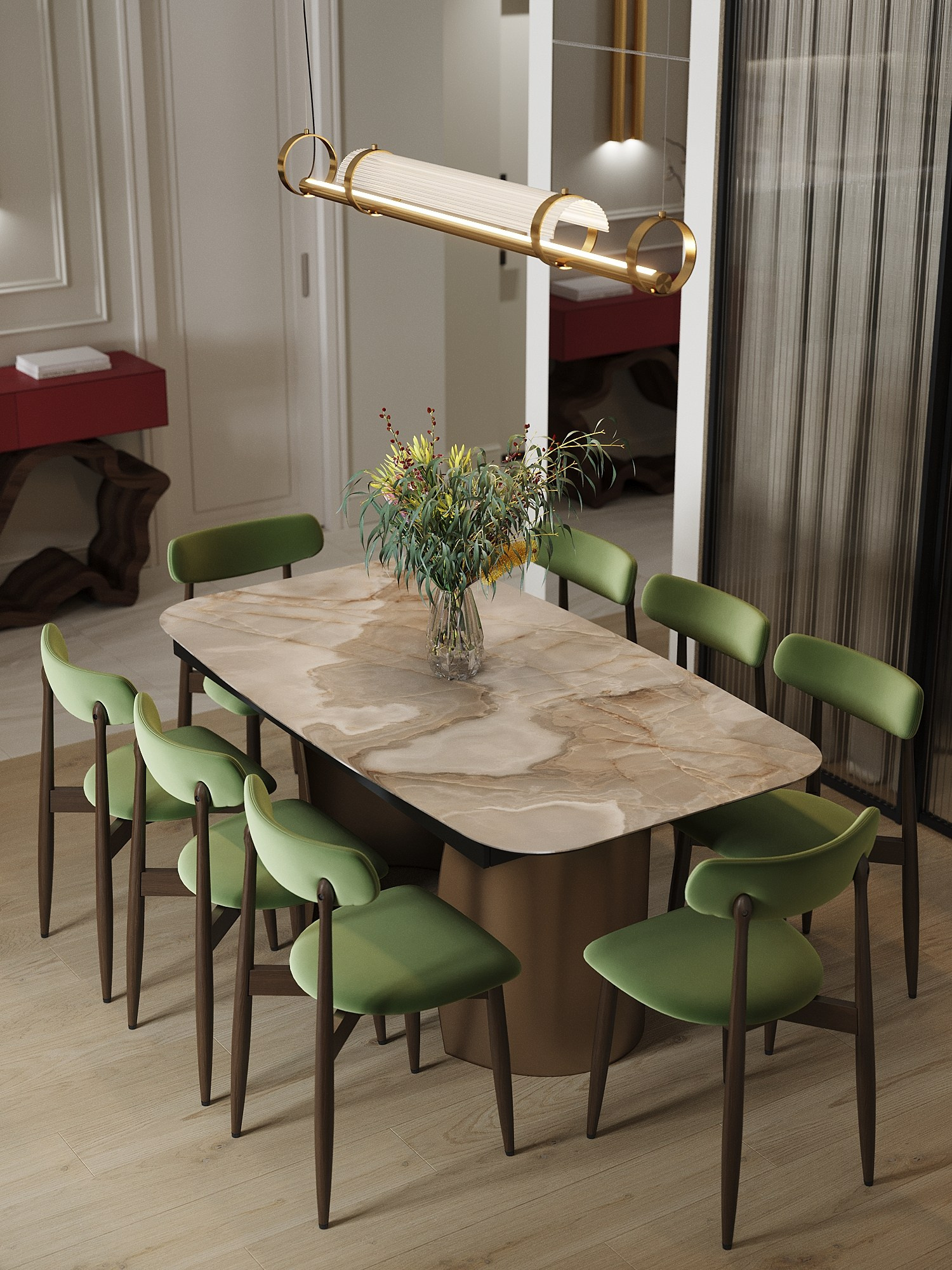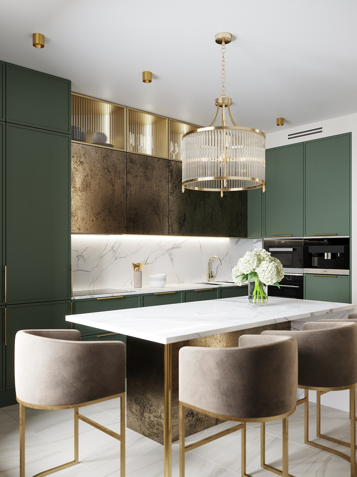 Также для семьи спроектирована большая кухня-гостиная с островом для завтраков и большим обеденным столом для приема пищи всей семьей и прихода гостей. Телевизор клиенты не смотрят, но иногда наслаждаются просмотром фильмов на проекторе, специально для этих целей встроили экран в потолок.