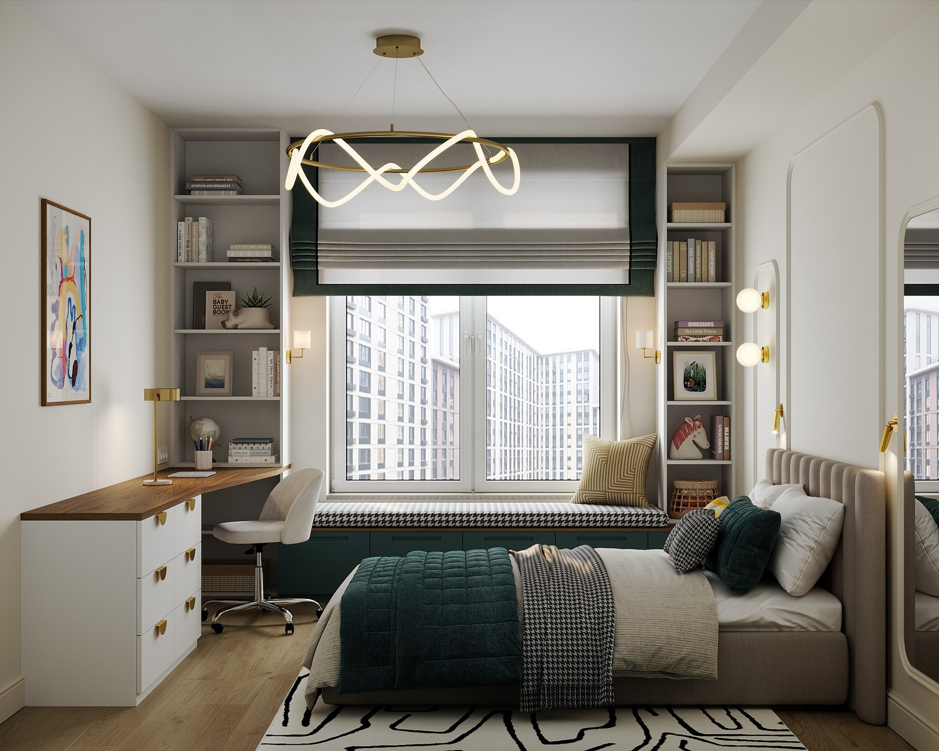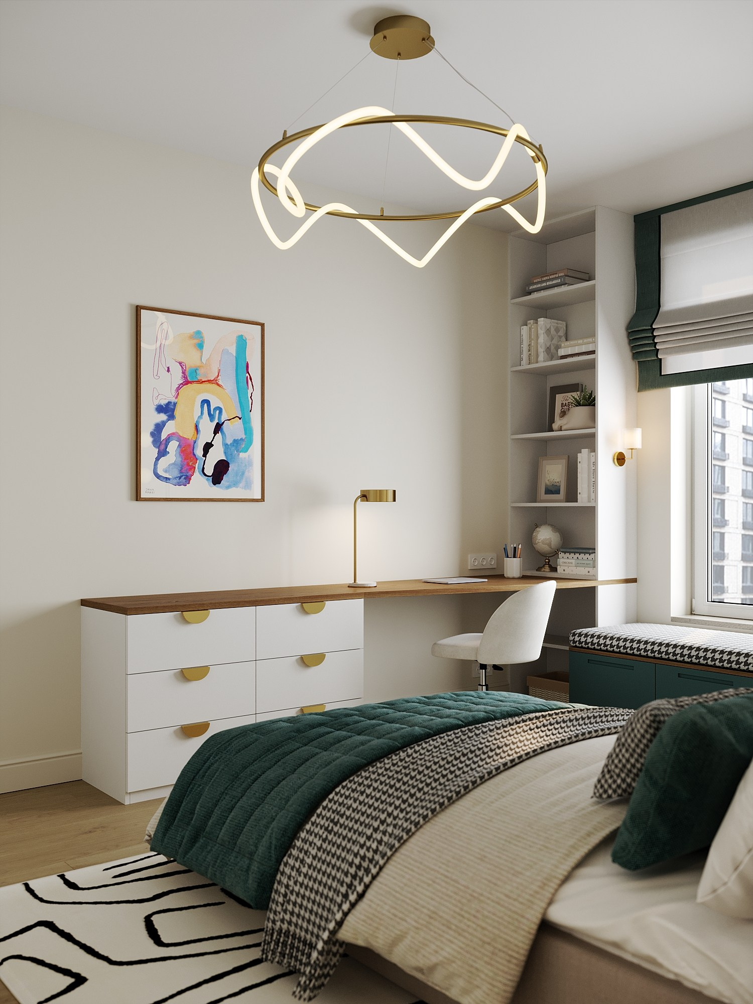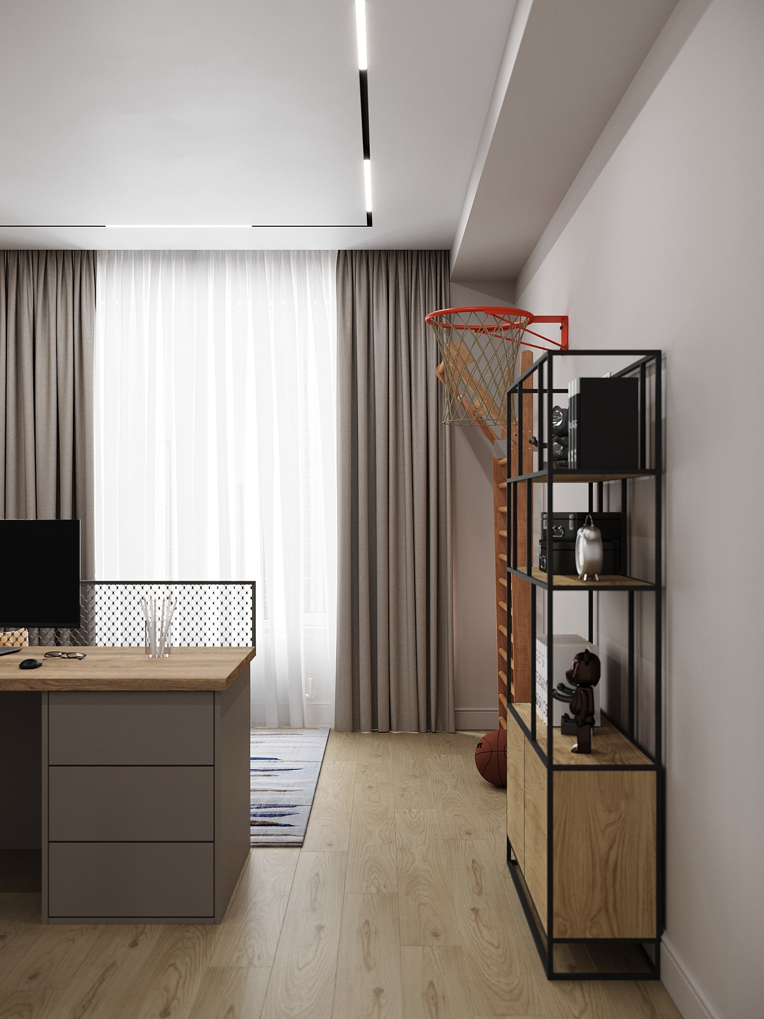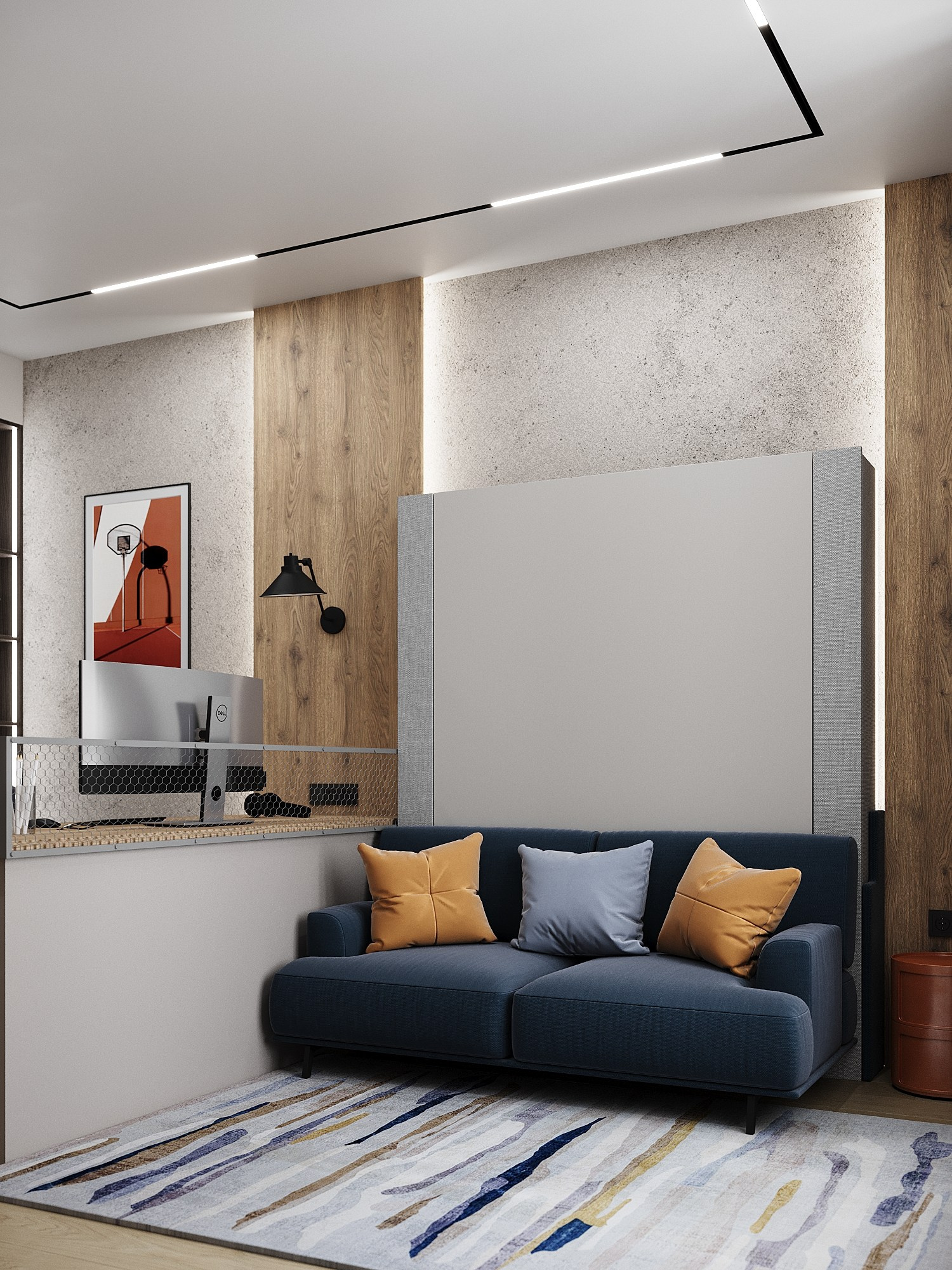 К сыну часто приходят друзья поиграть на приставке, поэтому ему установили складную кровать, чтобы он мог убирать её на время визита гостей.