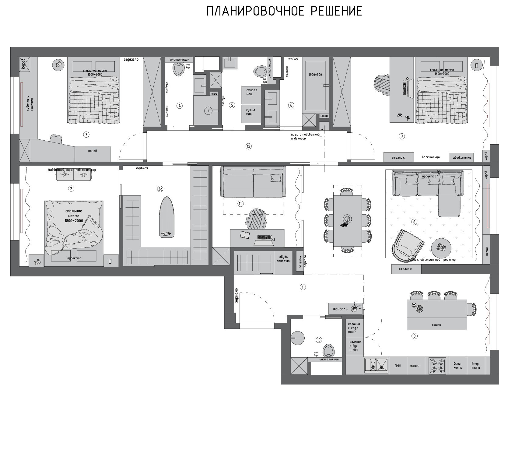 Супруге нужна была огромная гардеробная, а еще обязательно не ставить унитаз в родительский санузел (противоречит фен-шуй).
