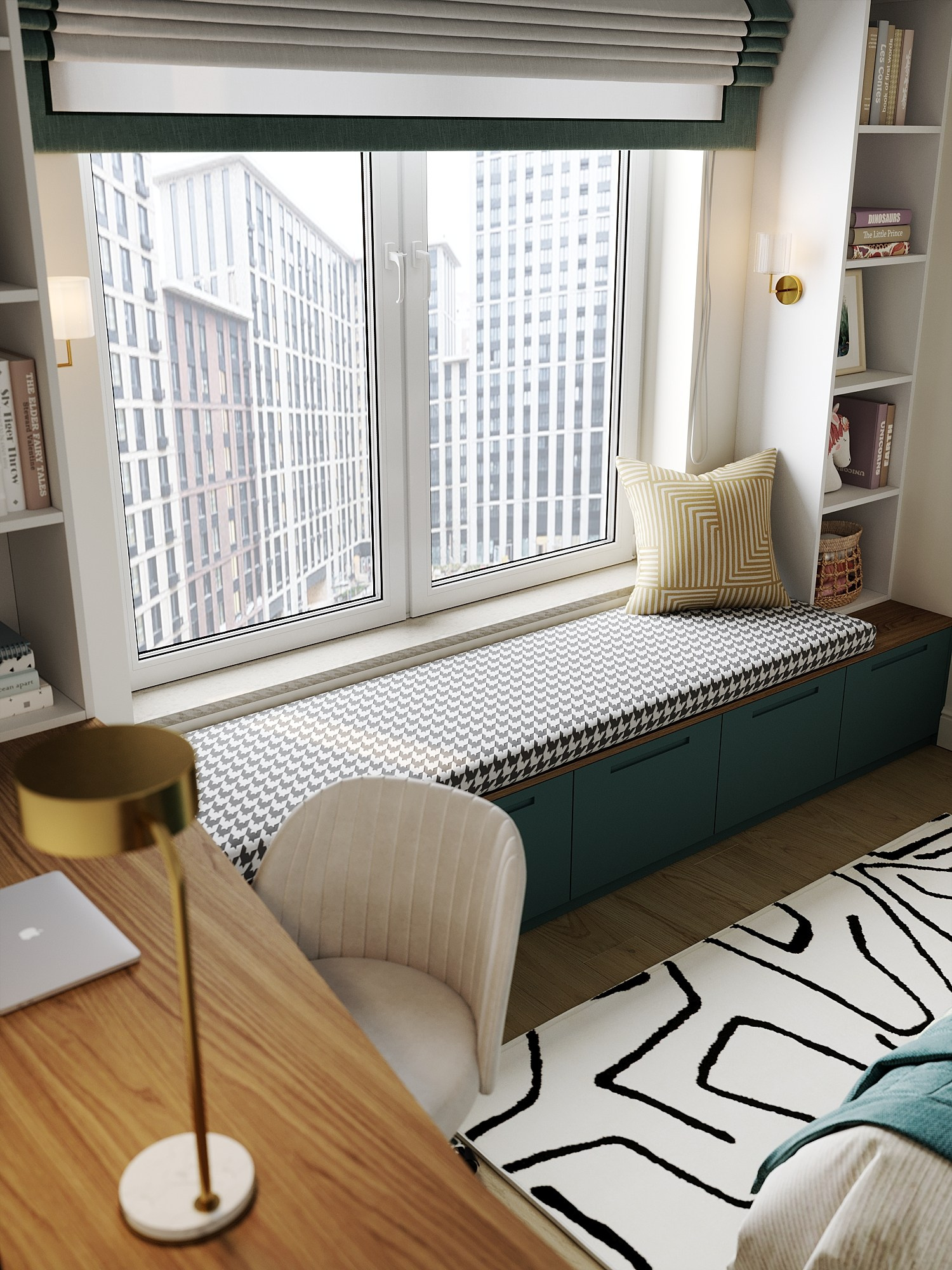 Дочка мечтала у диванчика у окна, чтобы она сидеть на нем и читать книги. А еще кровать как у взрослых.