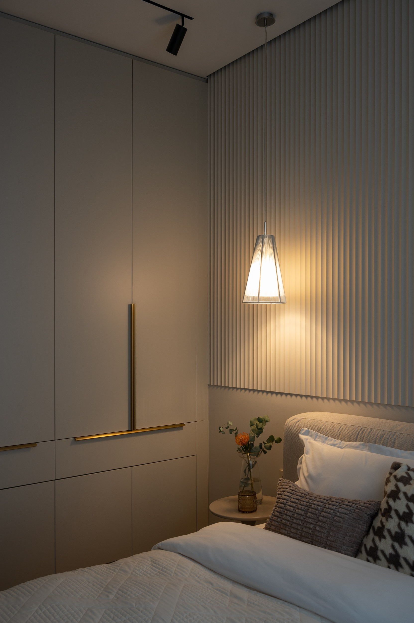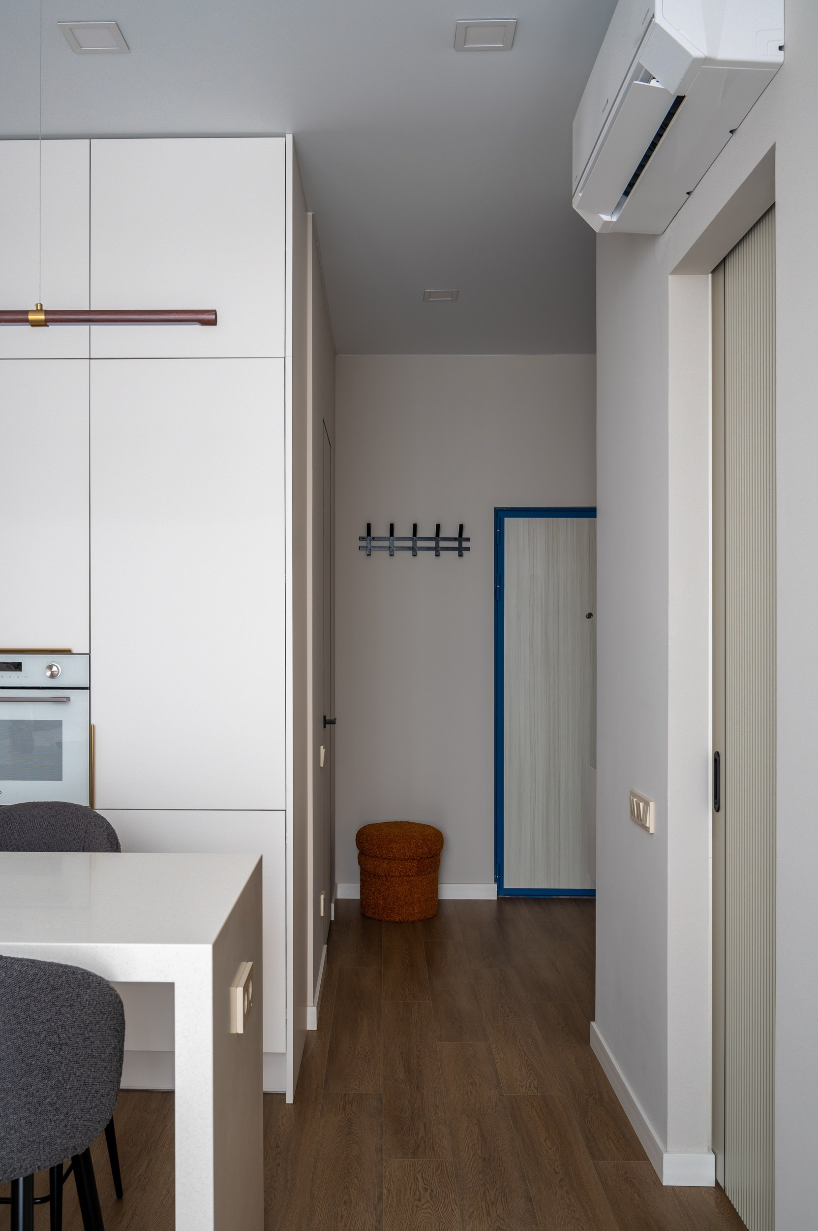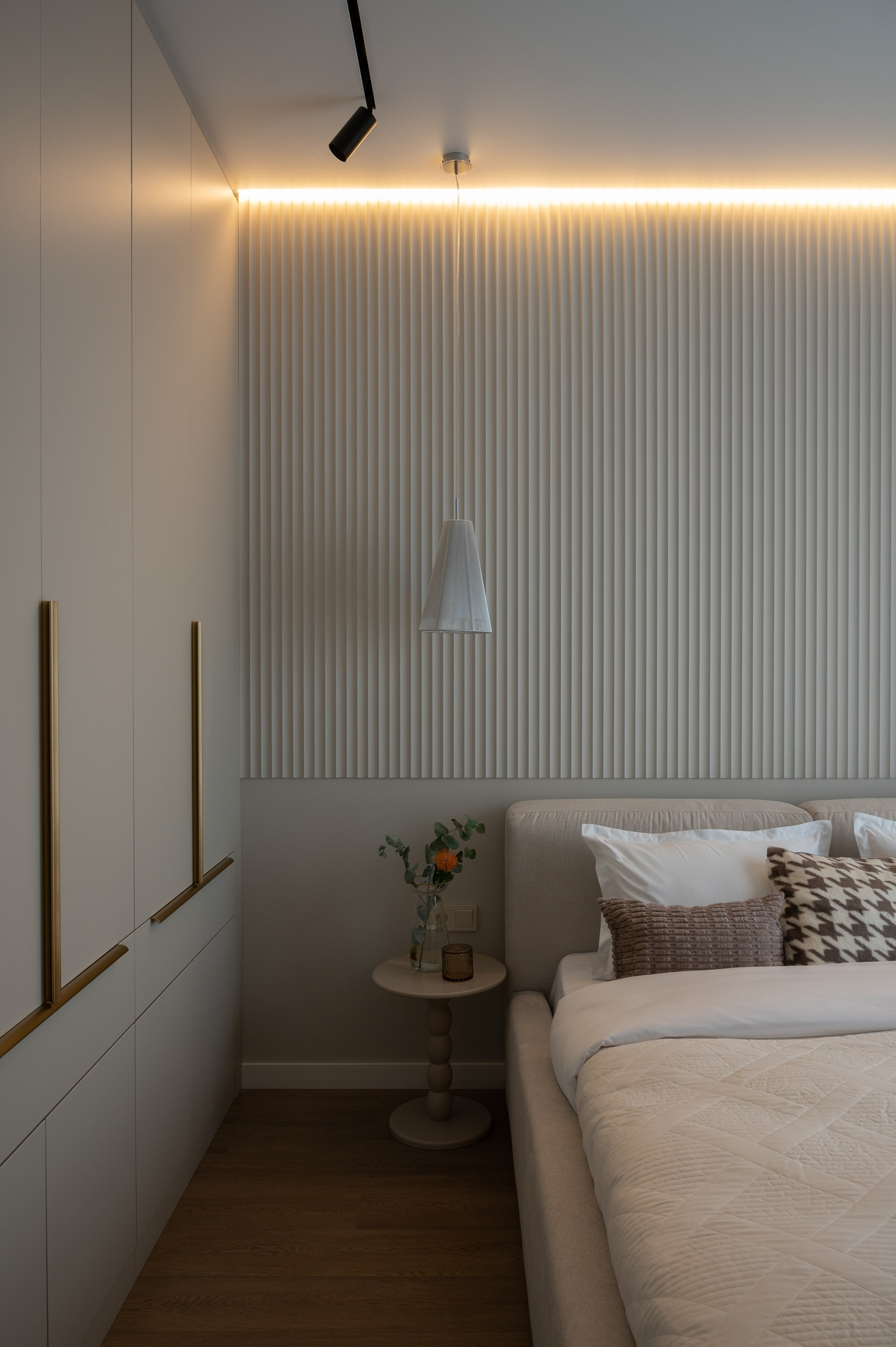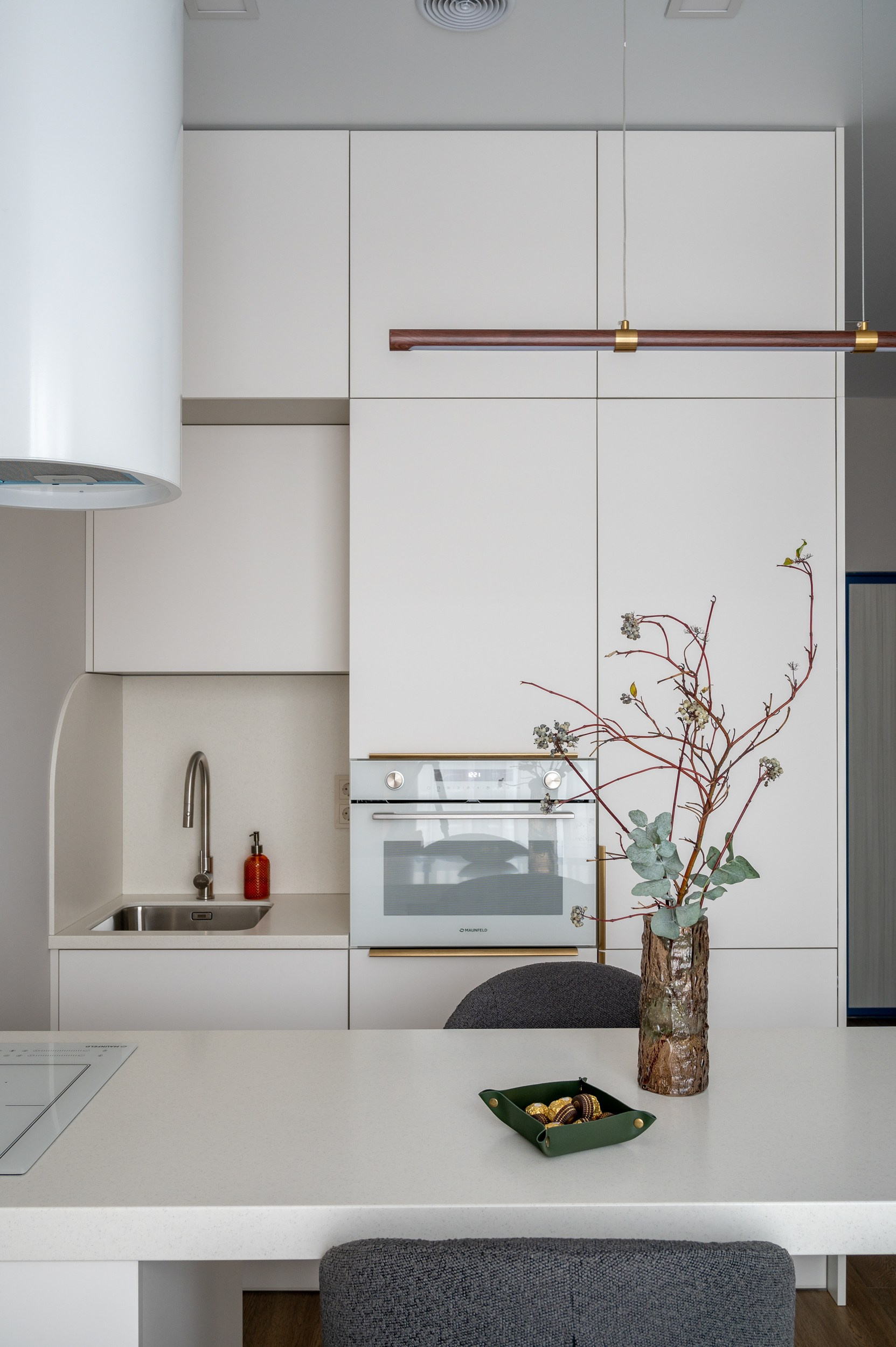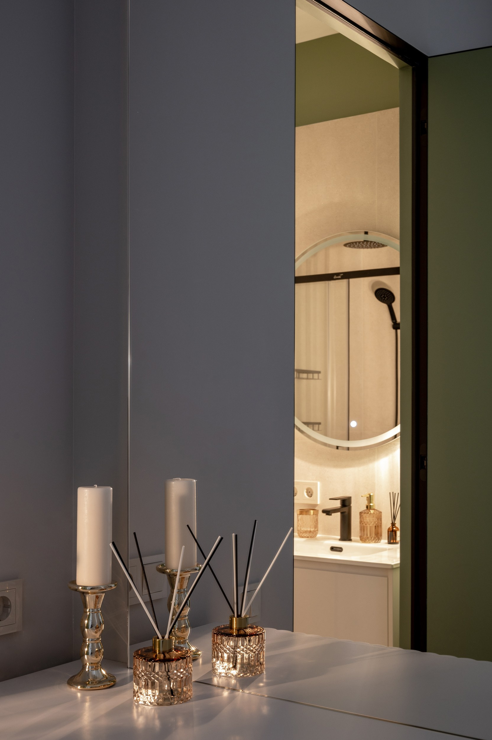 Маленькая милая квартира под сдачу. Моей задачей было улучшить планировку от застройщика — я добавила гардеробную, перенесла дверь в спальню, чтобы сделать огромный шкаф, и спроектировала нейтральную отделку, которая будет долго актуальной, легко восстанавливаться в случае повреждений и при этом нравиться очень многим людям. Как обычно, я добавила много видов освещения — и верхний уровень, и средний, и различные подсветки. Теперь в этой квартире не только функционально, но и очень эстетично.