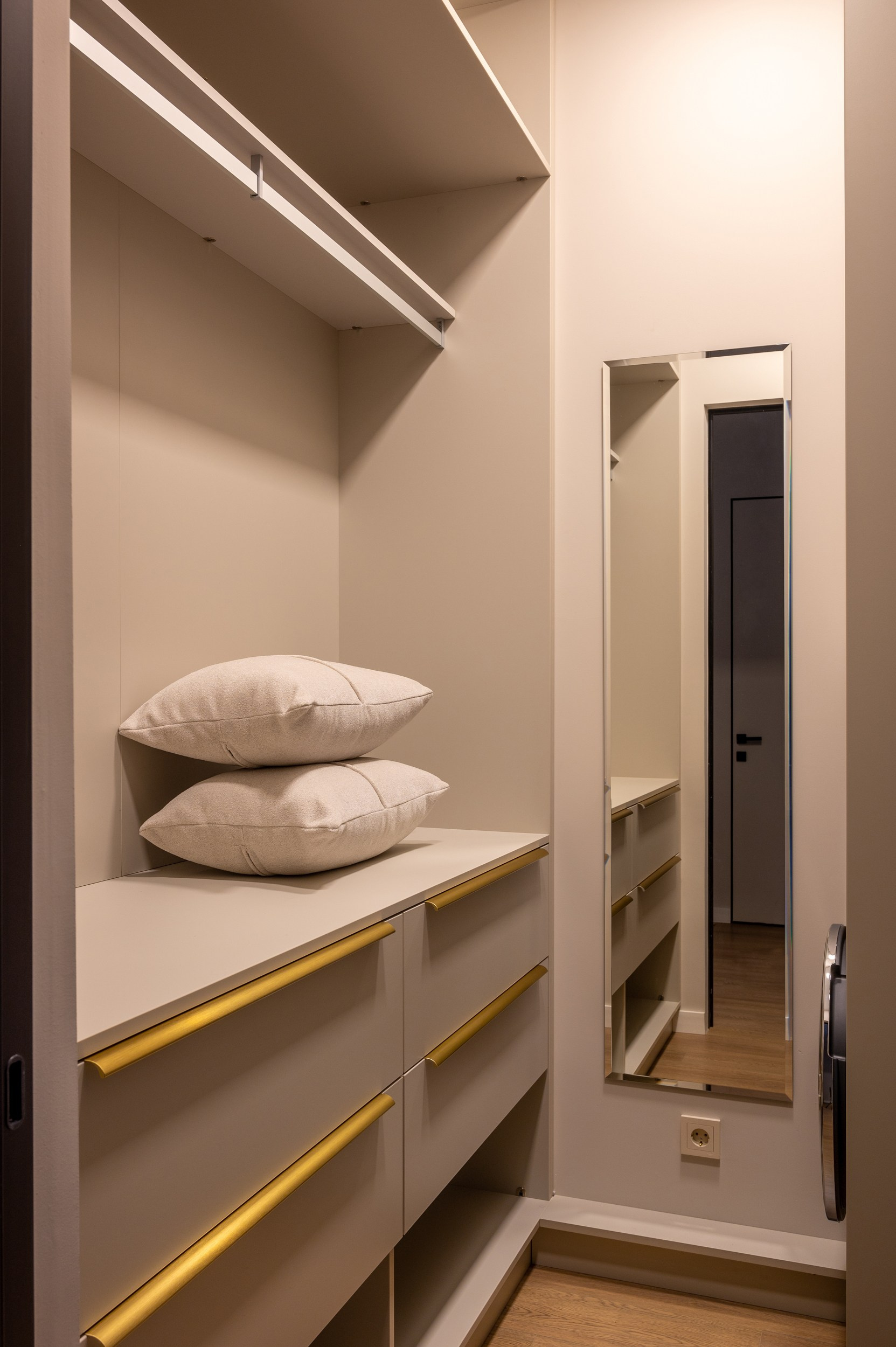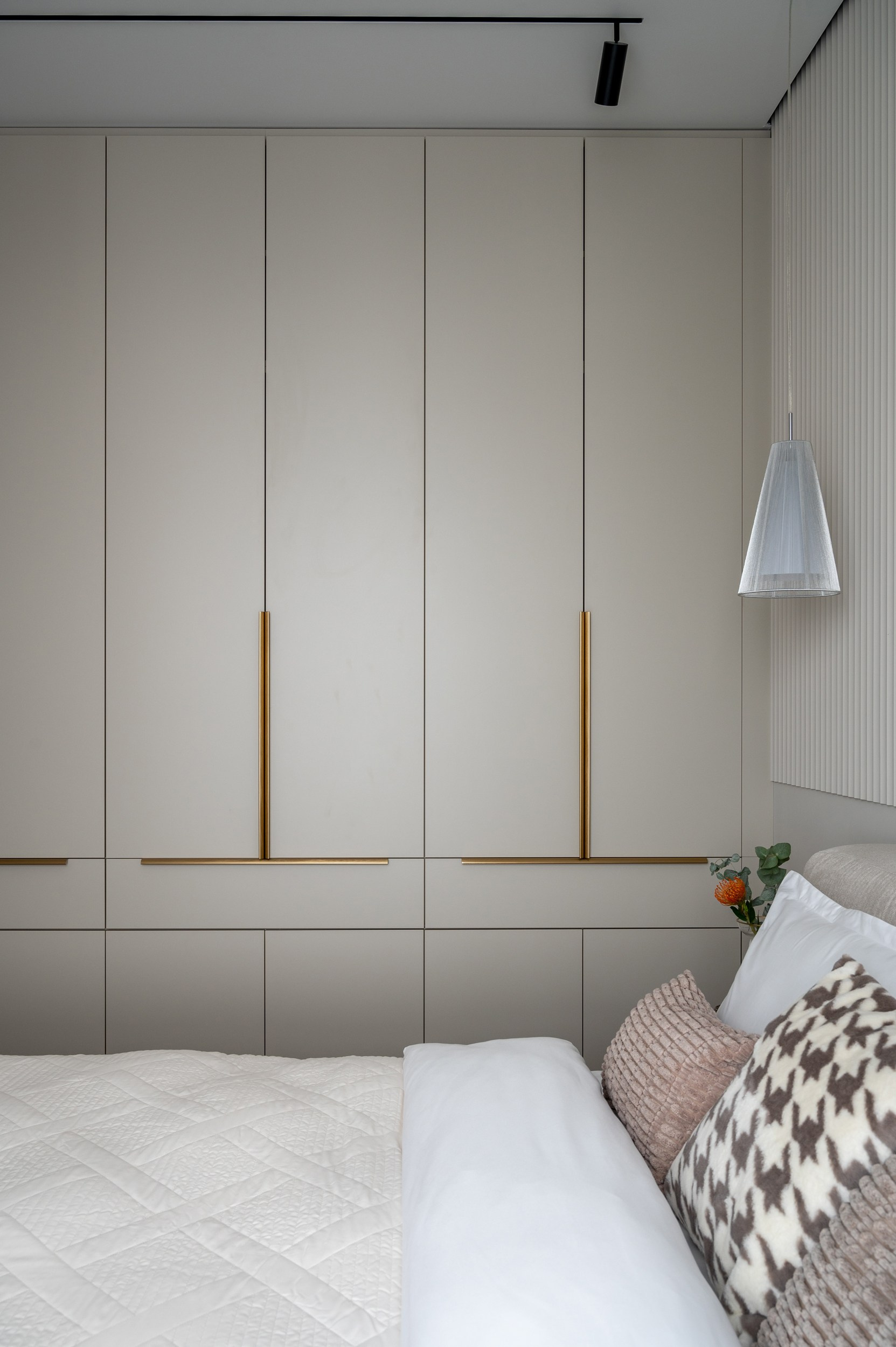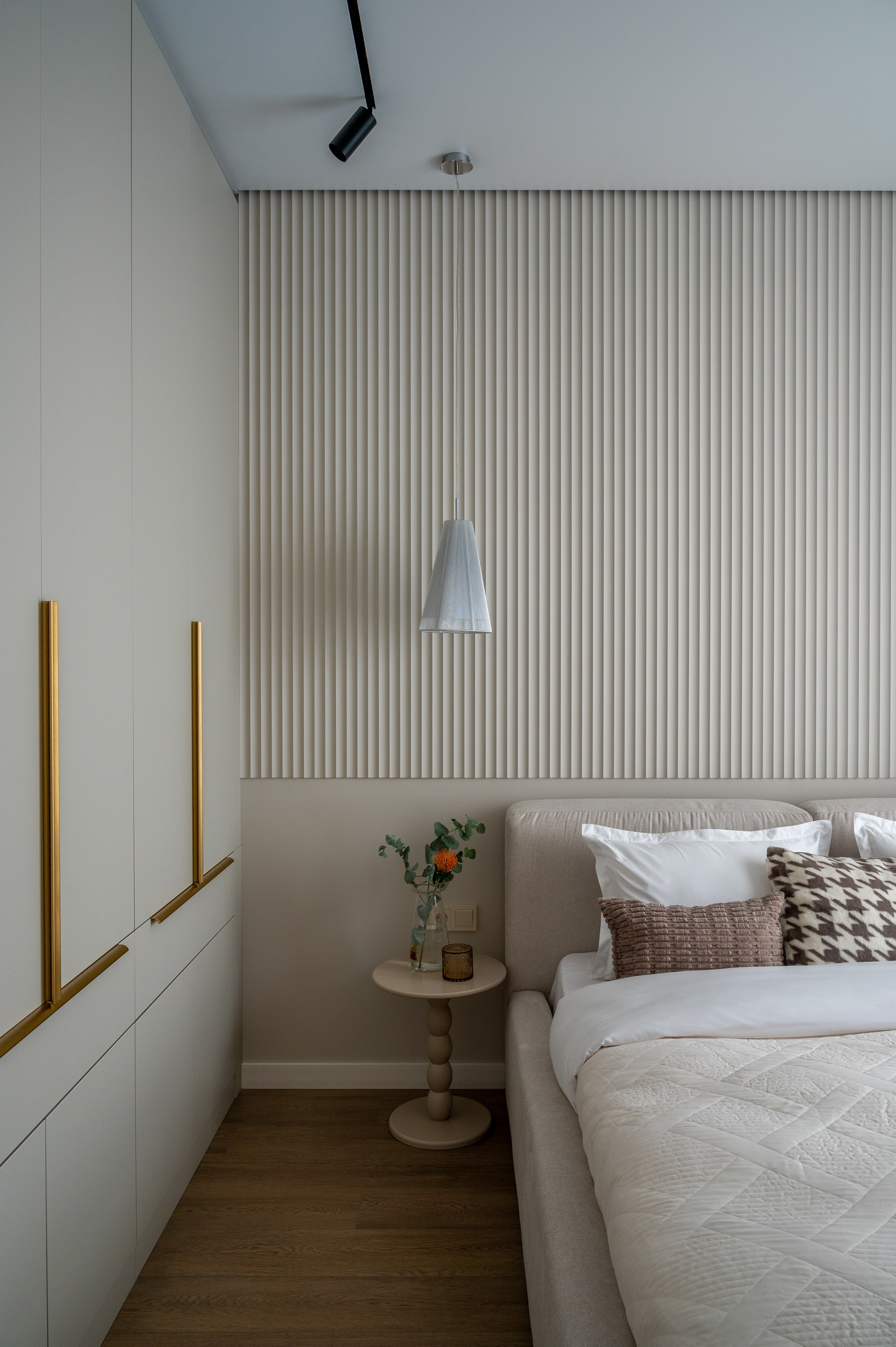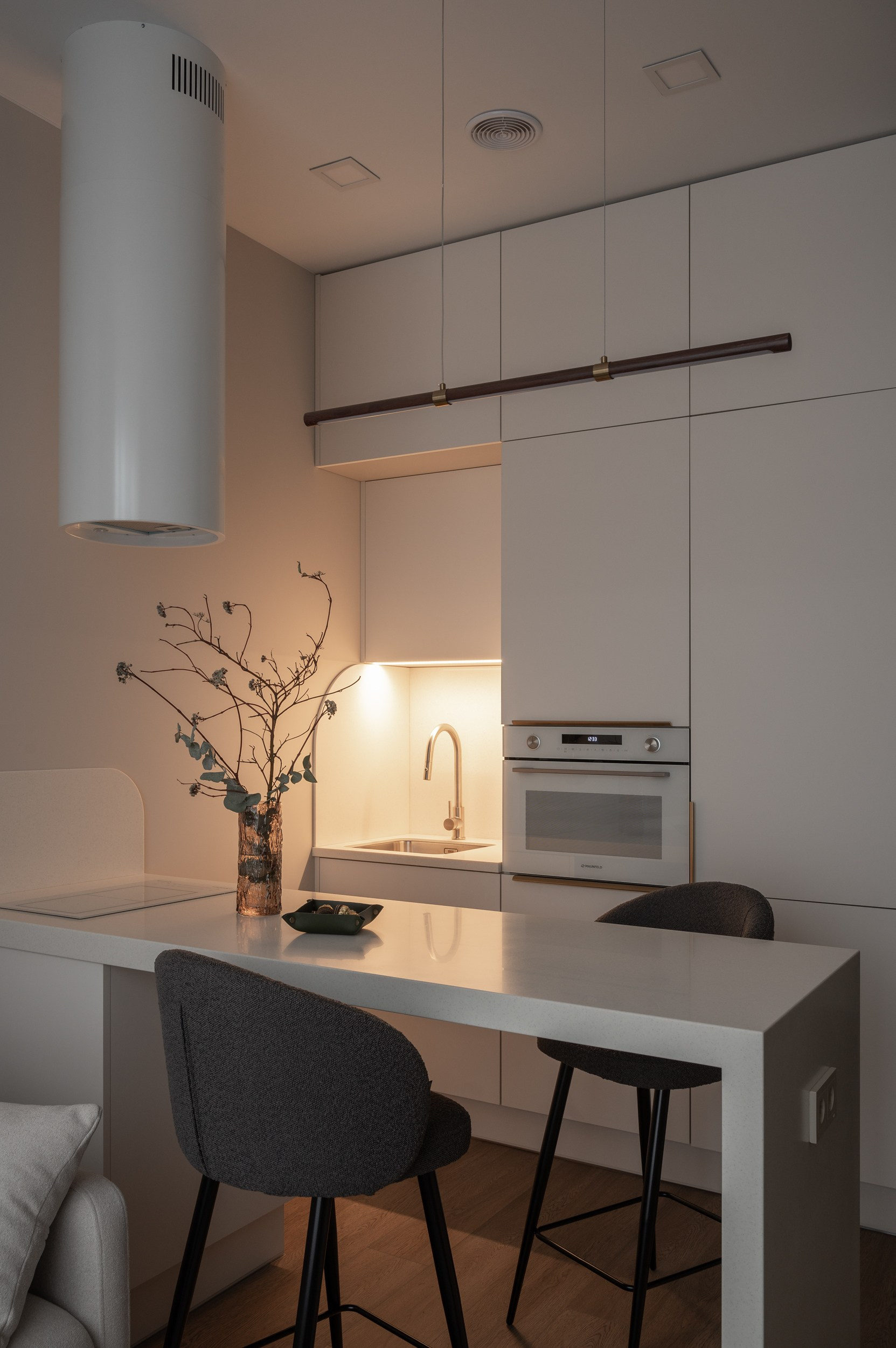 Маленькая милая квартира под сдачу. Моей задачей было улучшить планировку от застройщика — я добавила гардеробную, перенесла дверь в спальню, чтобы сделать огромный шкаф, и спроектировала нейтральную отделку, которая будет долго актуальной, легко восстанавливаться в случае повреждений и при этом нравиться очень многим людям. Как обычно, я добавила много видов освещения — и верхний уровень, и средний, и различные подсветки. Теперь в этой квартире не только функционально, но и очень эстетично.