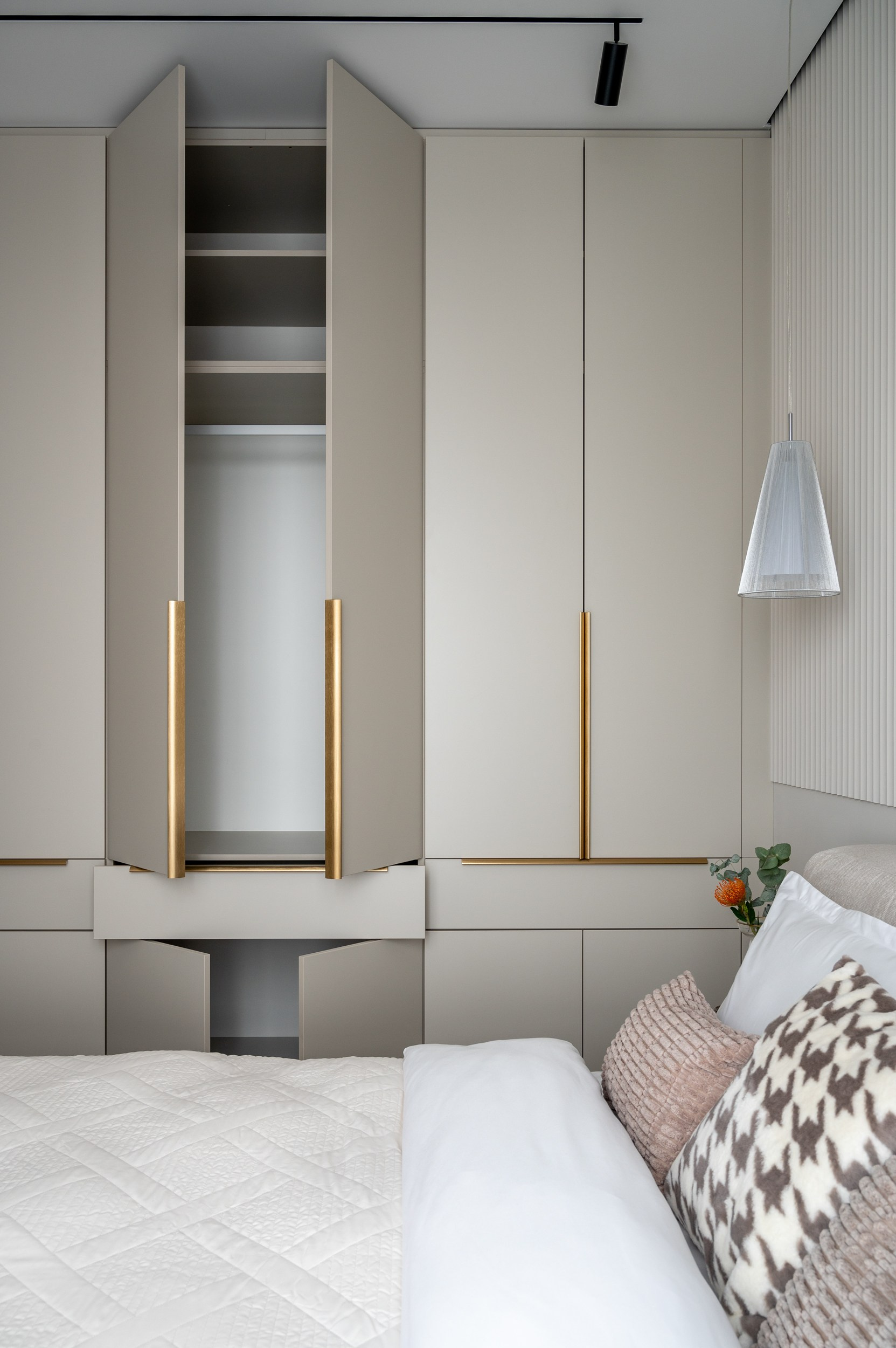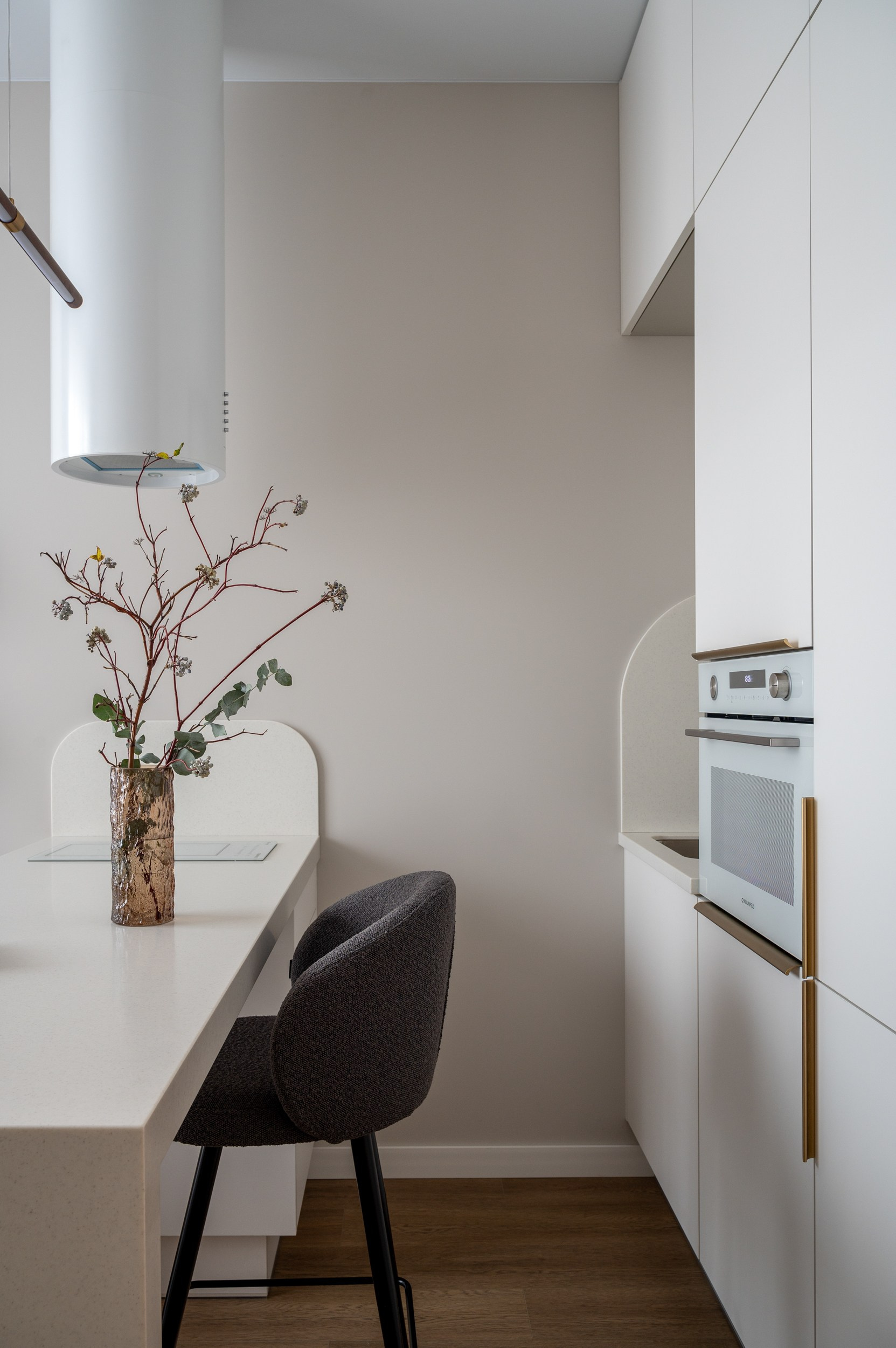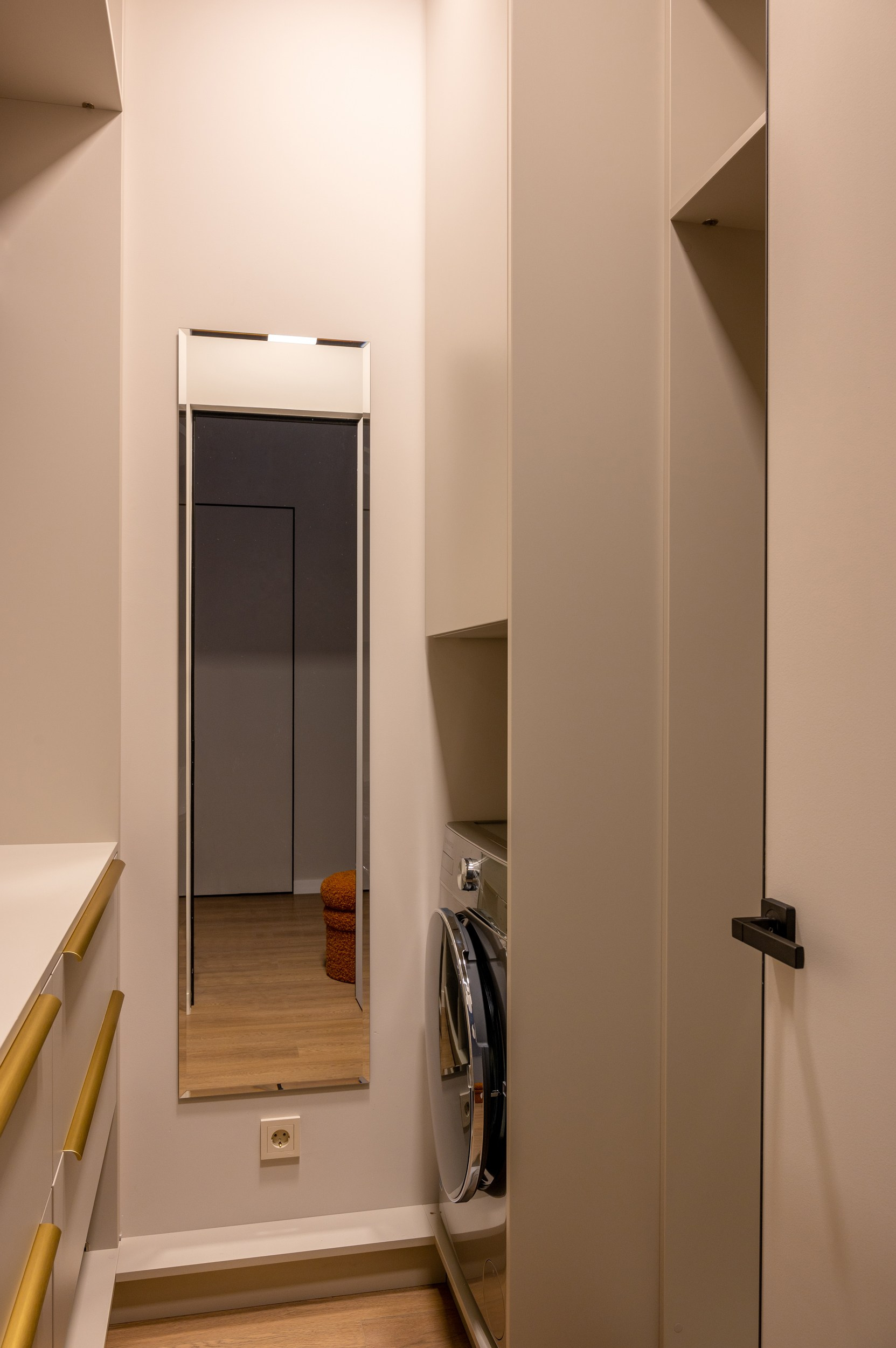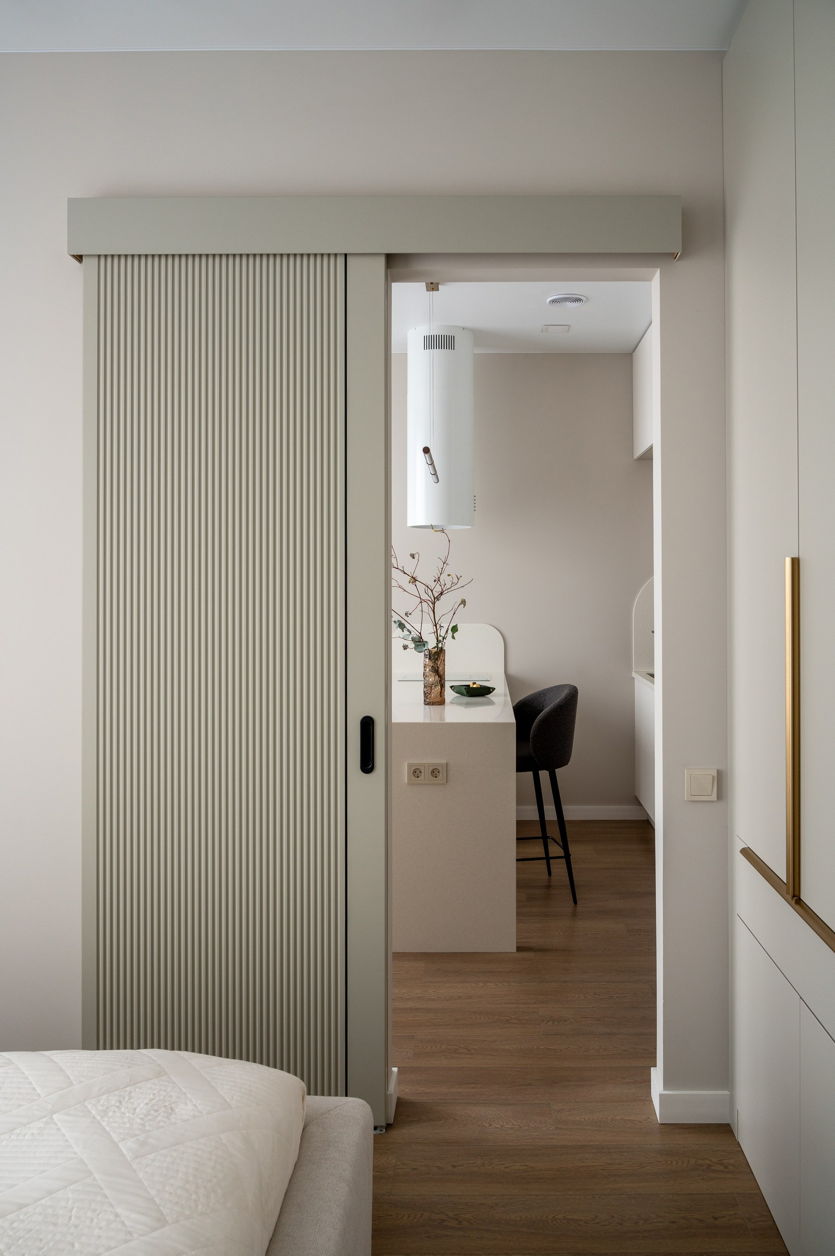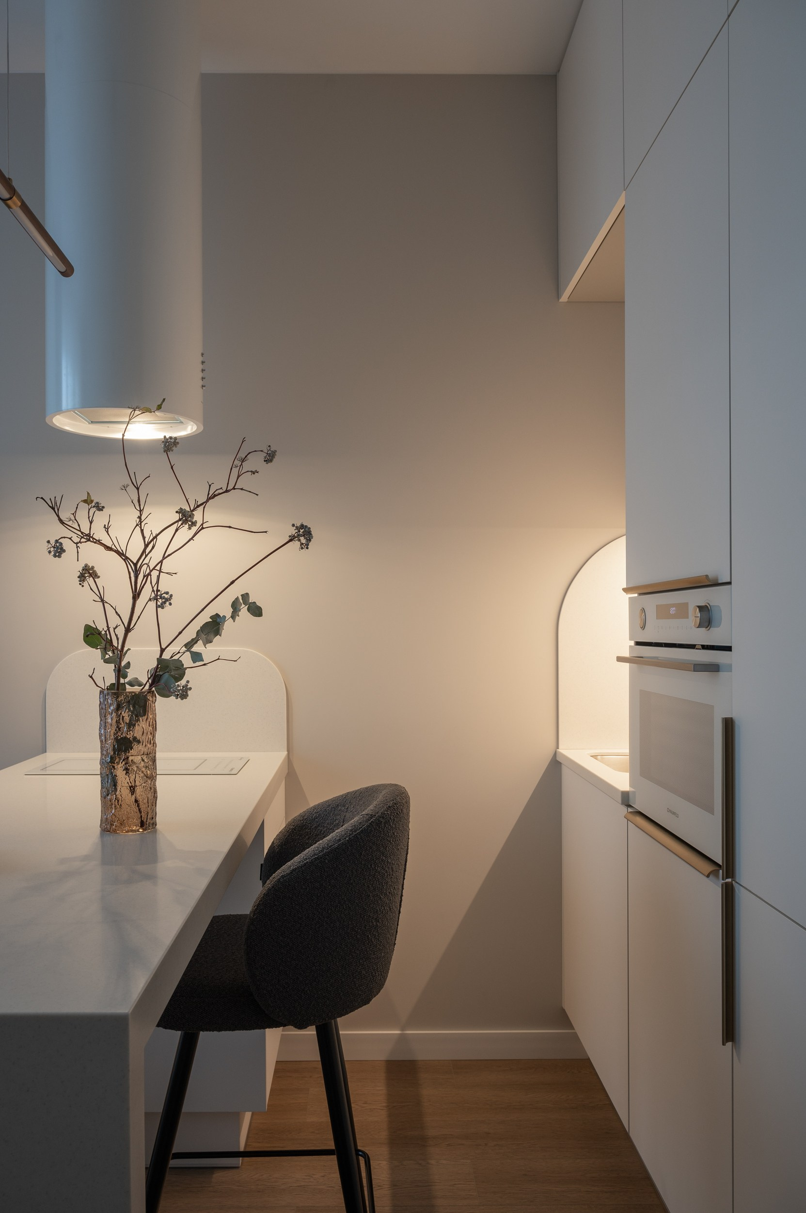Маленькая милая квартира под сдачу. Моей задачей было улучшить планировку от застройщика — я добавила гардеробную, перенесла дверь в спальню, чтобы сделать огромный шкаф, и спроектировала нейтральную отделку, которая будет долго актуальной, легко восстанавливаться в случае повреждений и при этом нравиться очень многим людям. Как обычно, я добавила много видов освещения — и верхний уровень, и средний, и различные подсветки. Теперь в этой квартире не только функционально, но и очень эстетично.