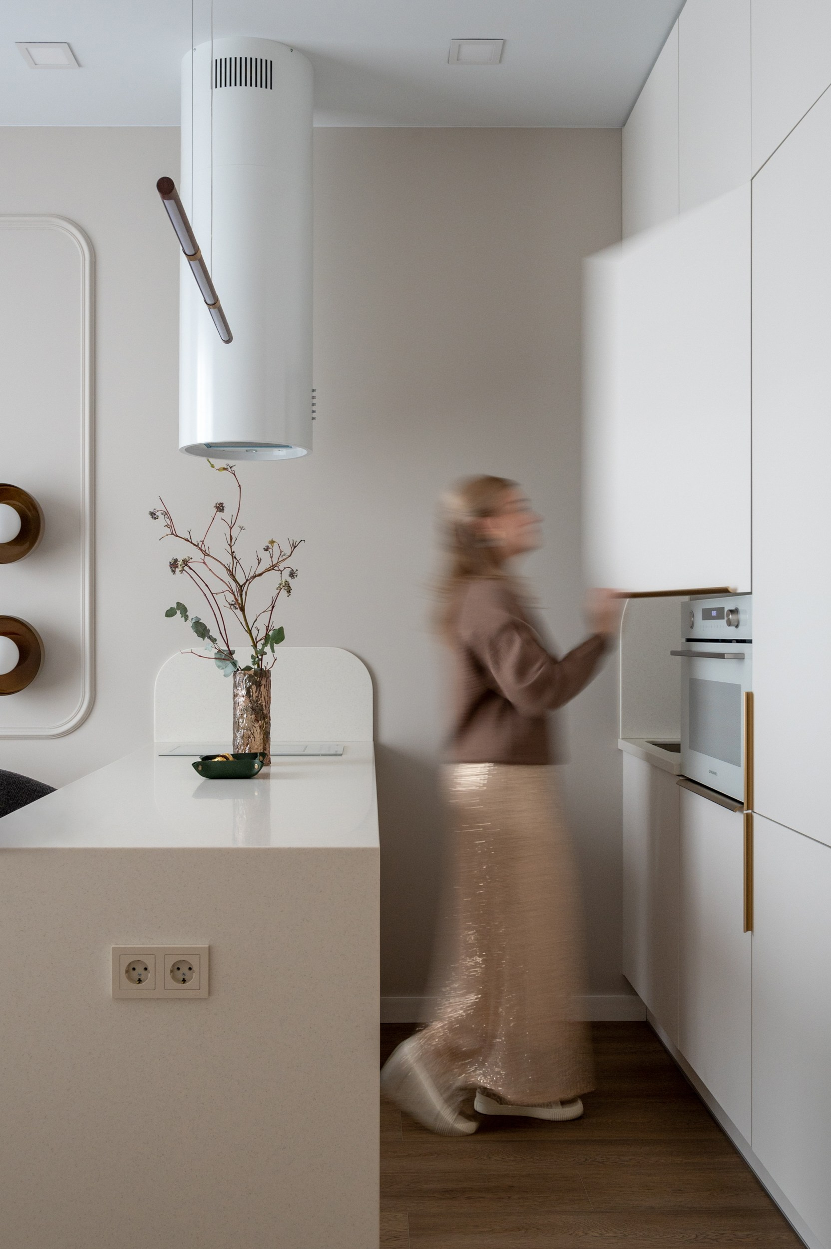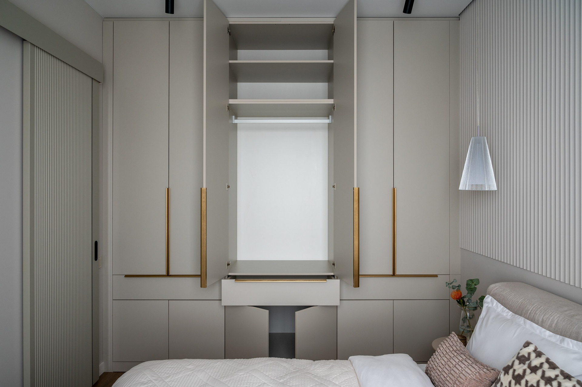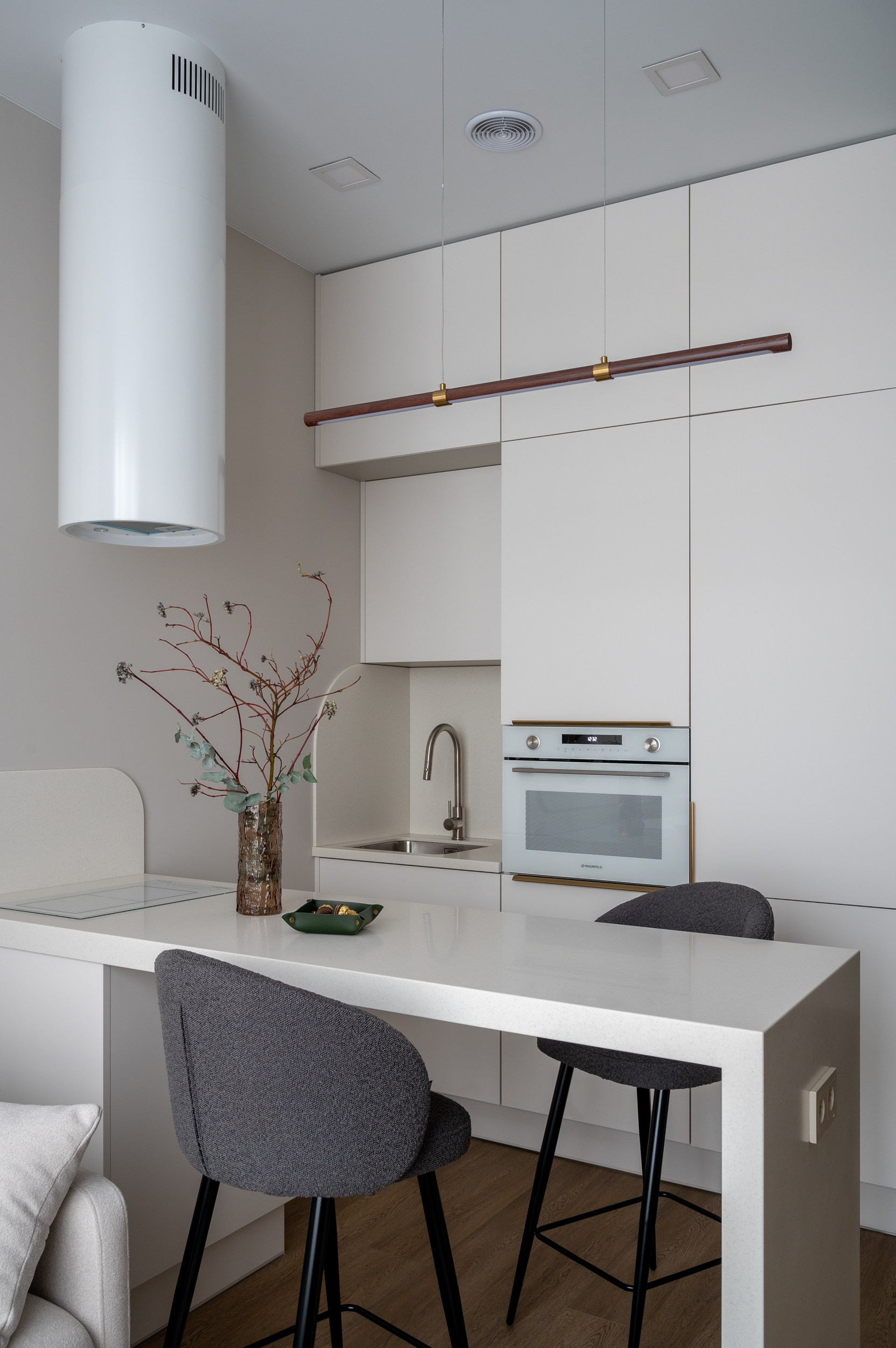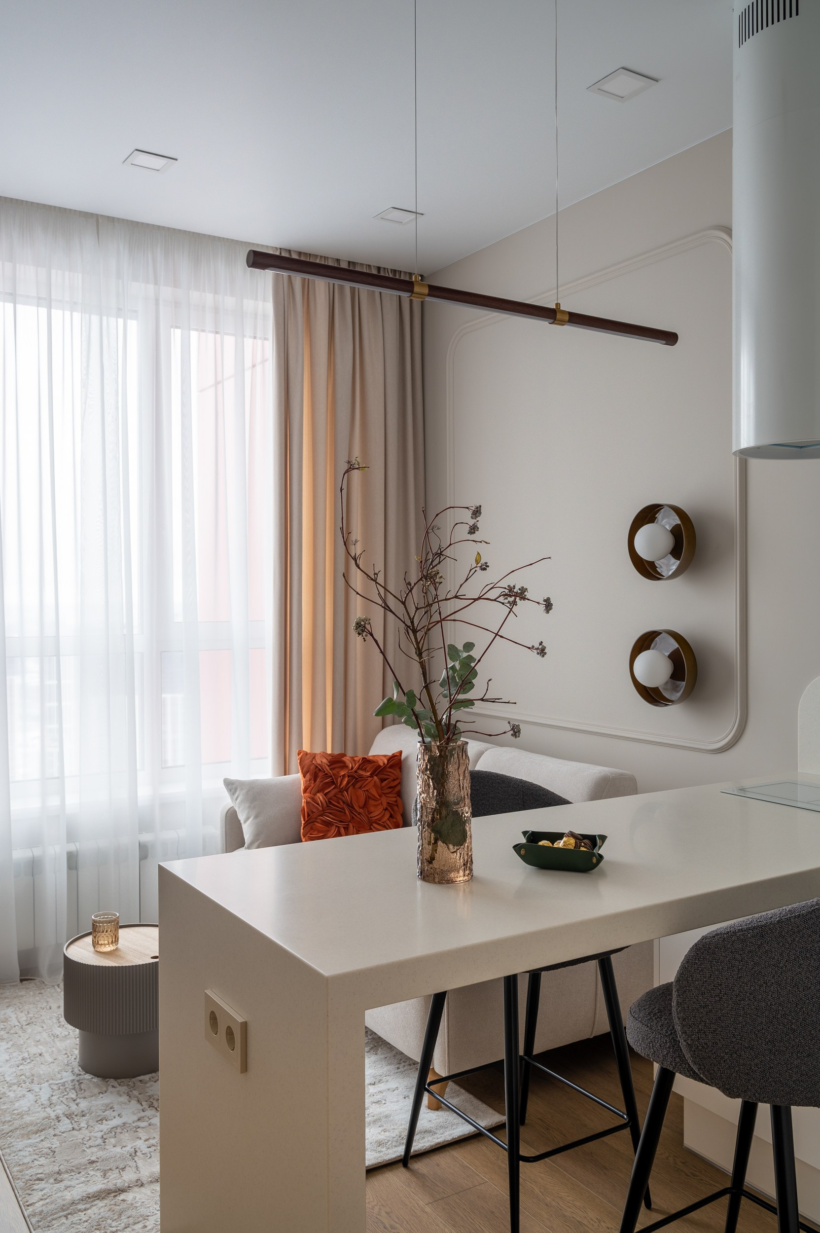 Маленькая милая квартира под сдачу. Моей задачей было улучшить планировку от застройщика — я добавила гардеробную, перенесла дверь в спальню, чтобы сделать огромный шкаф, и спроектировала нейтральную отделку, которая будет долго актуальной, легко восстанавливаться в случае повреждений и при этом нравиться очень многим людям. Как обычно, я добавила много видов освещения — и верхний уровень, и средний, и различные подсветки. Теперь в этой квартире не только функционально, но и очень эстетично.