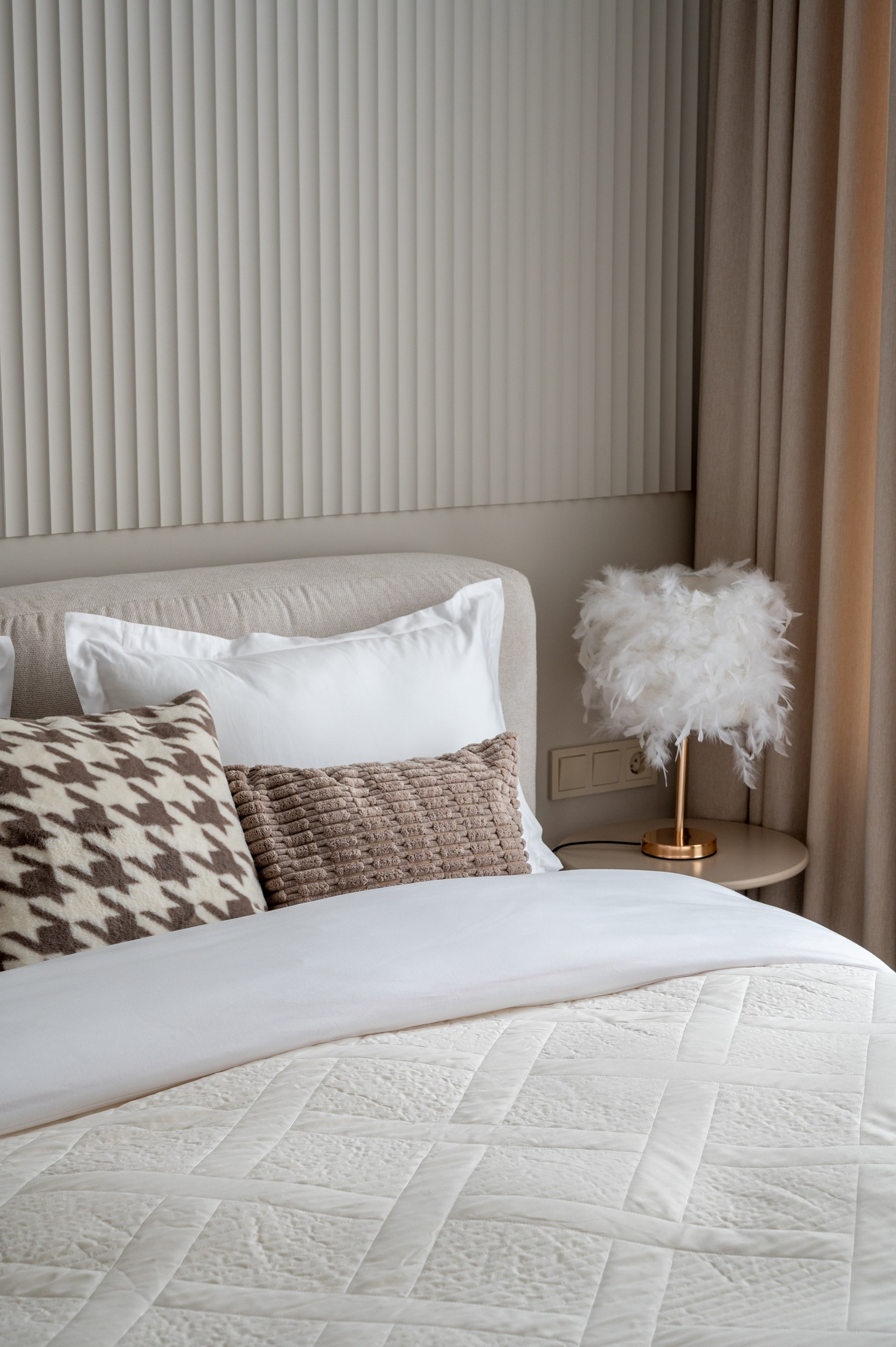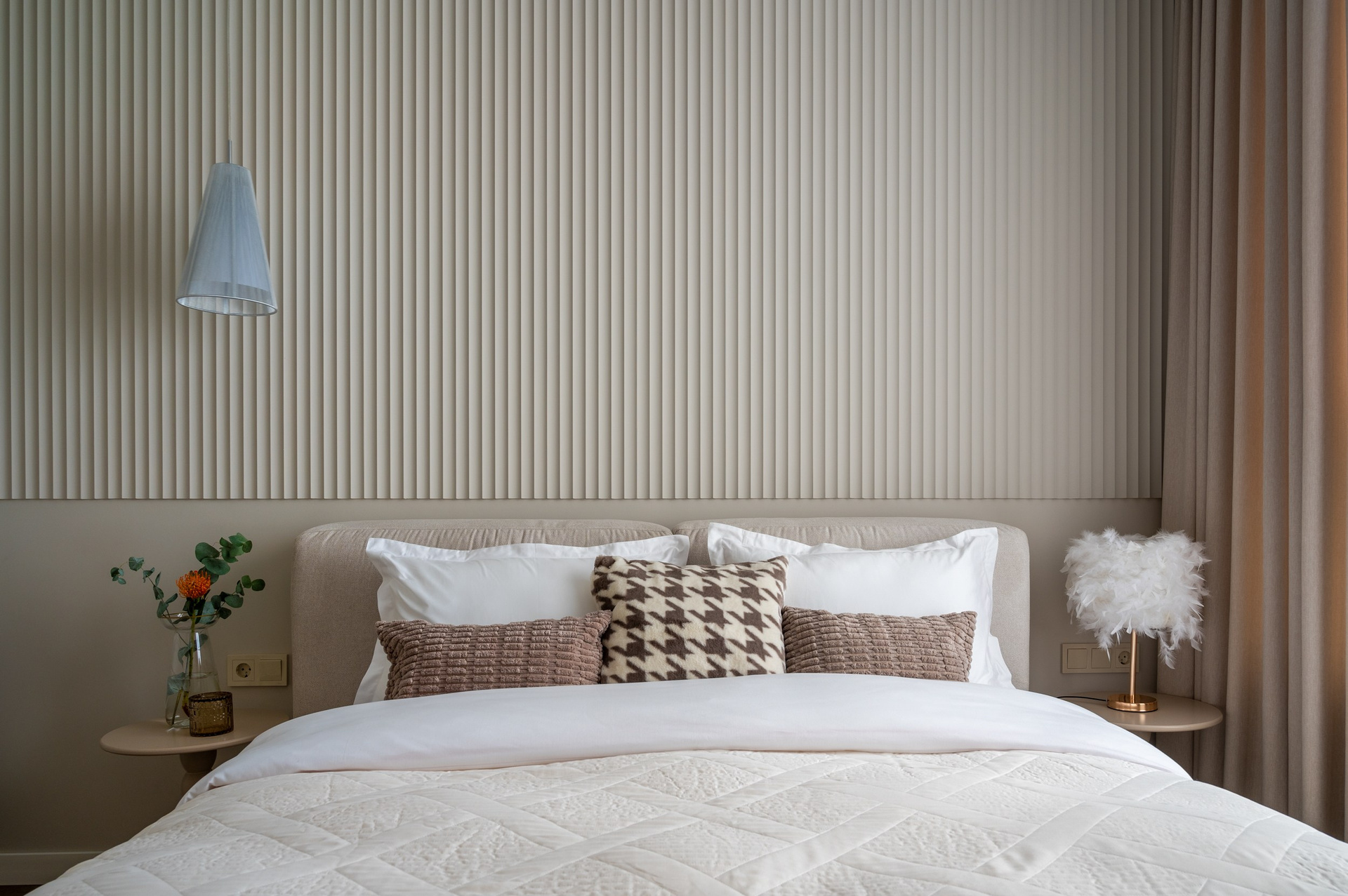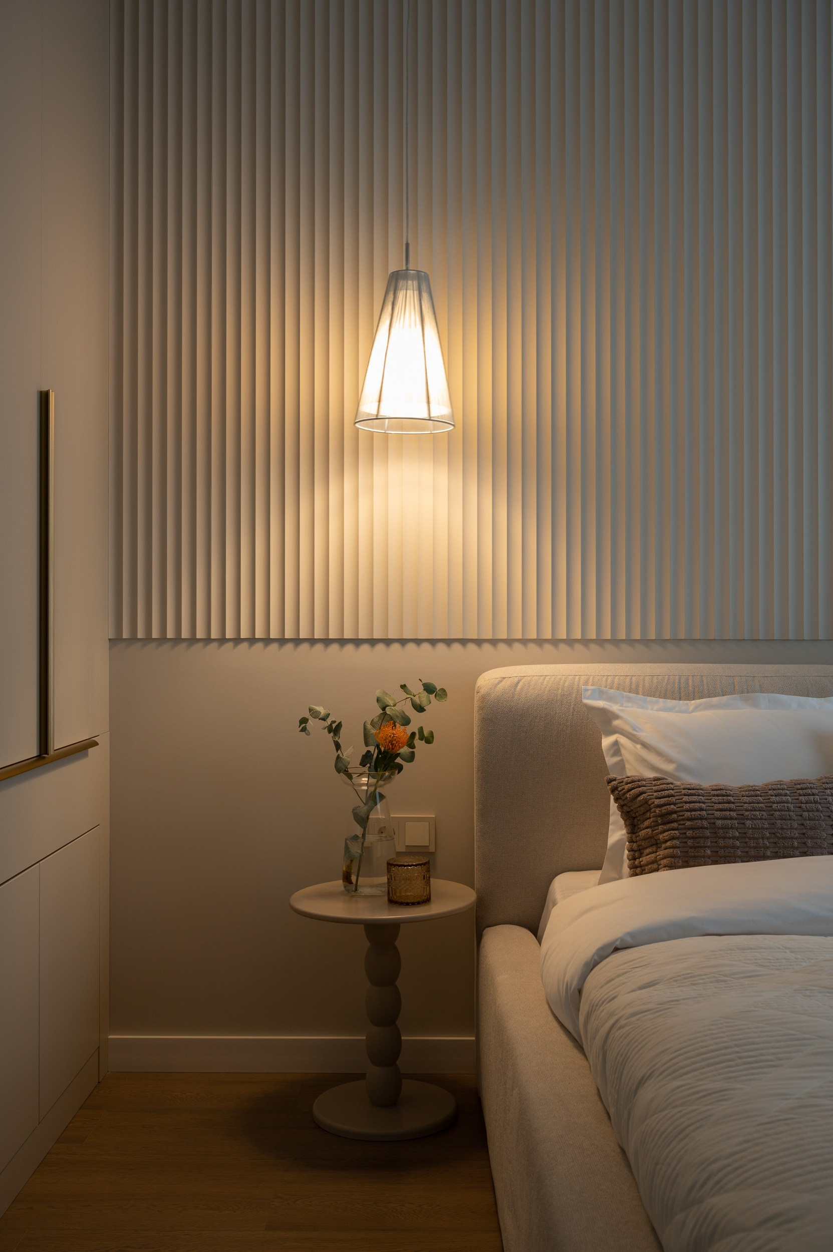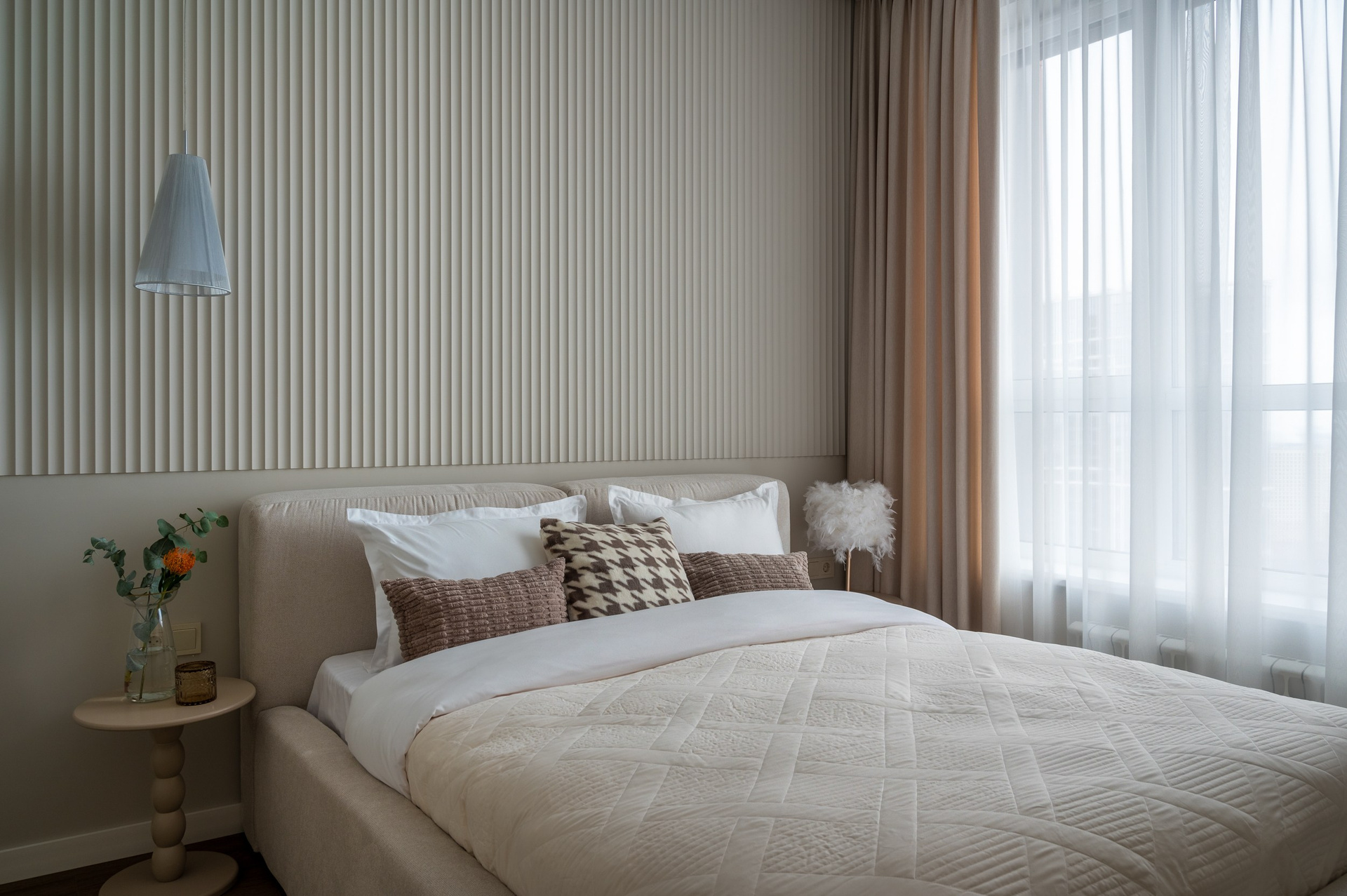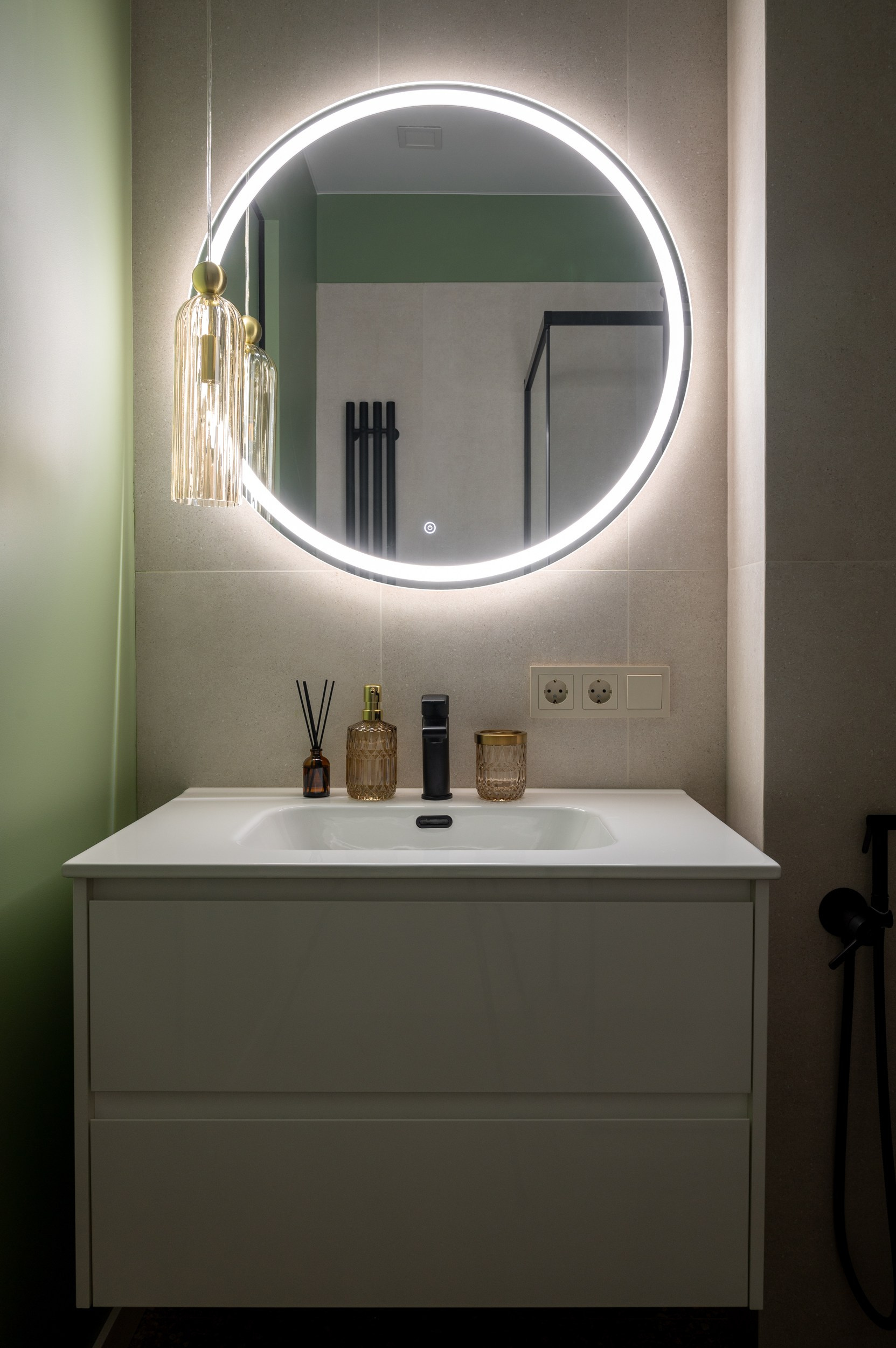 Маленькая милая квартира под сдачу. Моей задачей было улучшить планировку от застройщика — я добавила гардеробную, перенесла дверь в спальню, чтобы сделать огромный шкаф, и спроектировала нейтральную отделку, которая будет долго актуальной, легко восстанавливаться в случае повреждений и при этом нравиться очень многим людям. Как обычно, я добавила много видов освещения — и верхний уровень, и средний, и различные подсветки. Теперь в этой квартире не только функционально, но и очень эстетично.